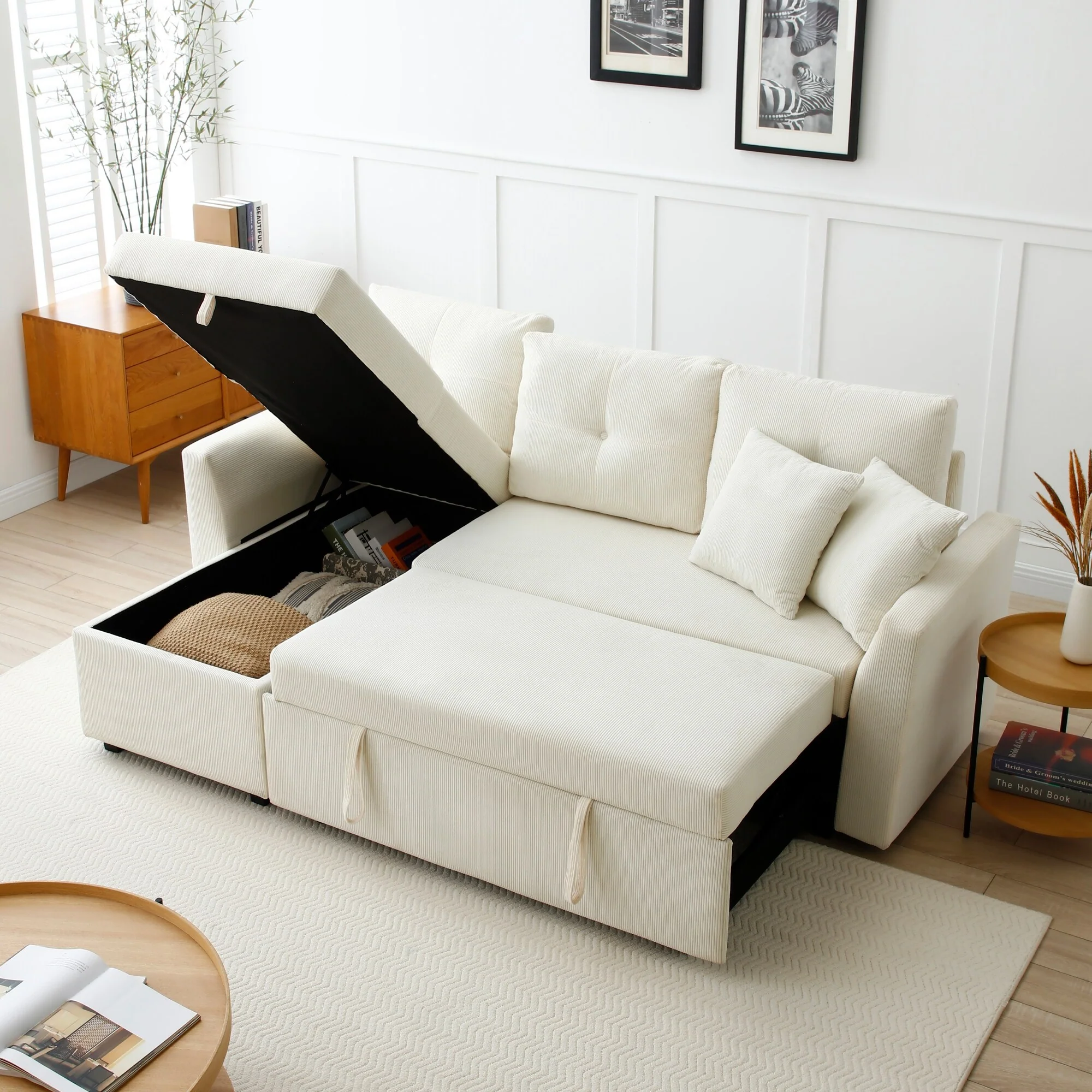 Pull Out Sofa Bed with Storage Chaise L Shape Sectional Sofa Bed