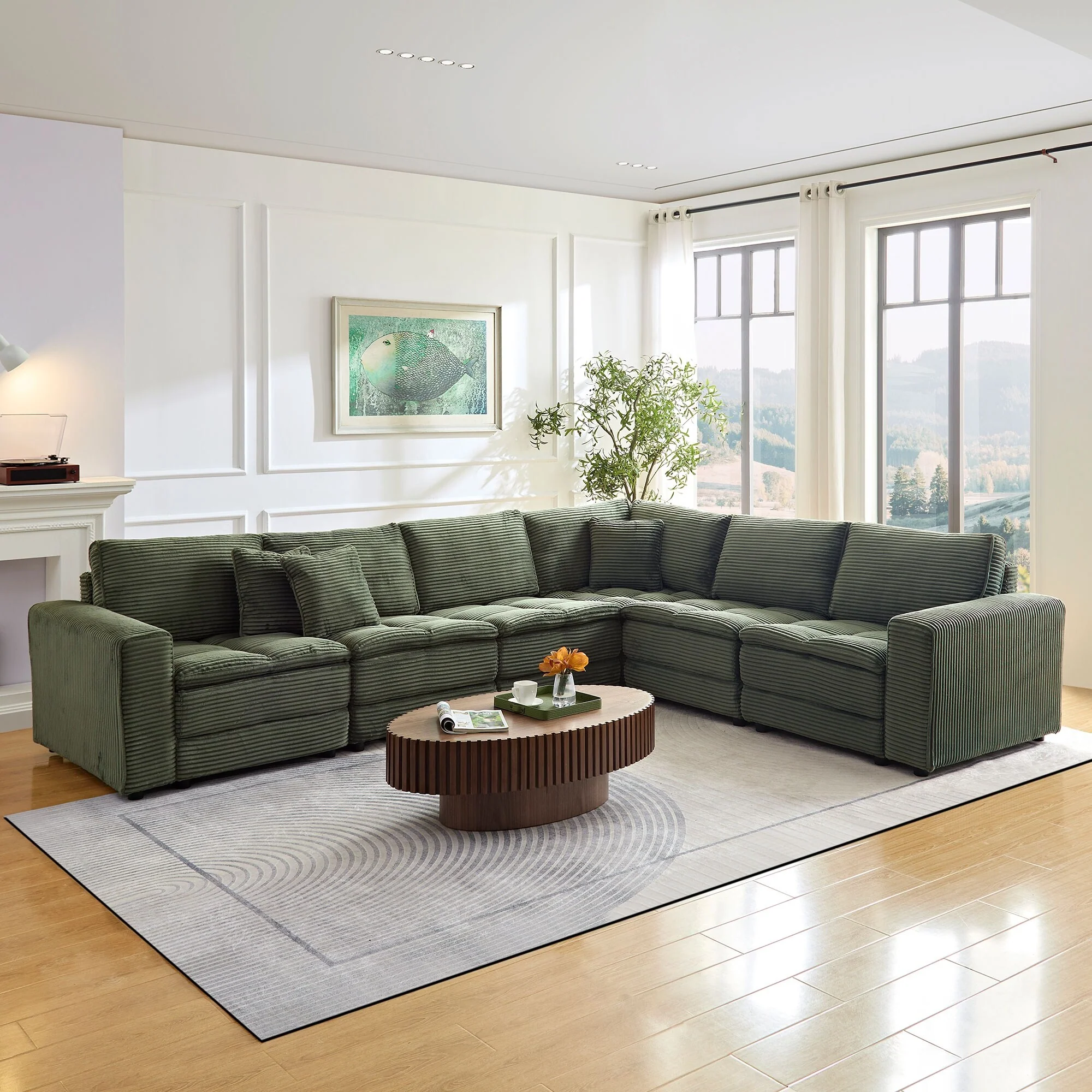 98 Customizable U-Shaped 6-Seater Sofa with Ottoman