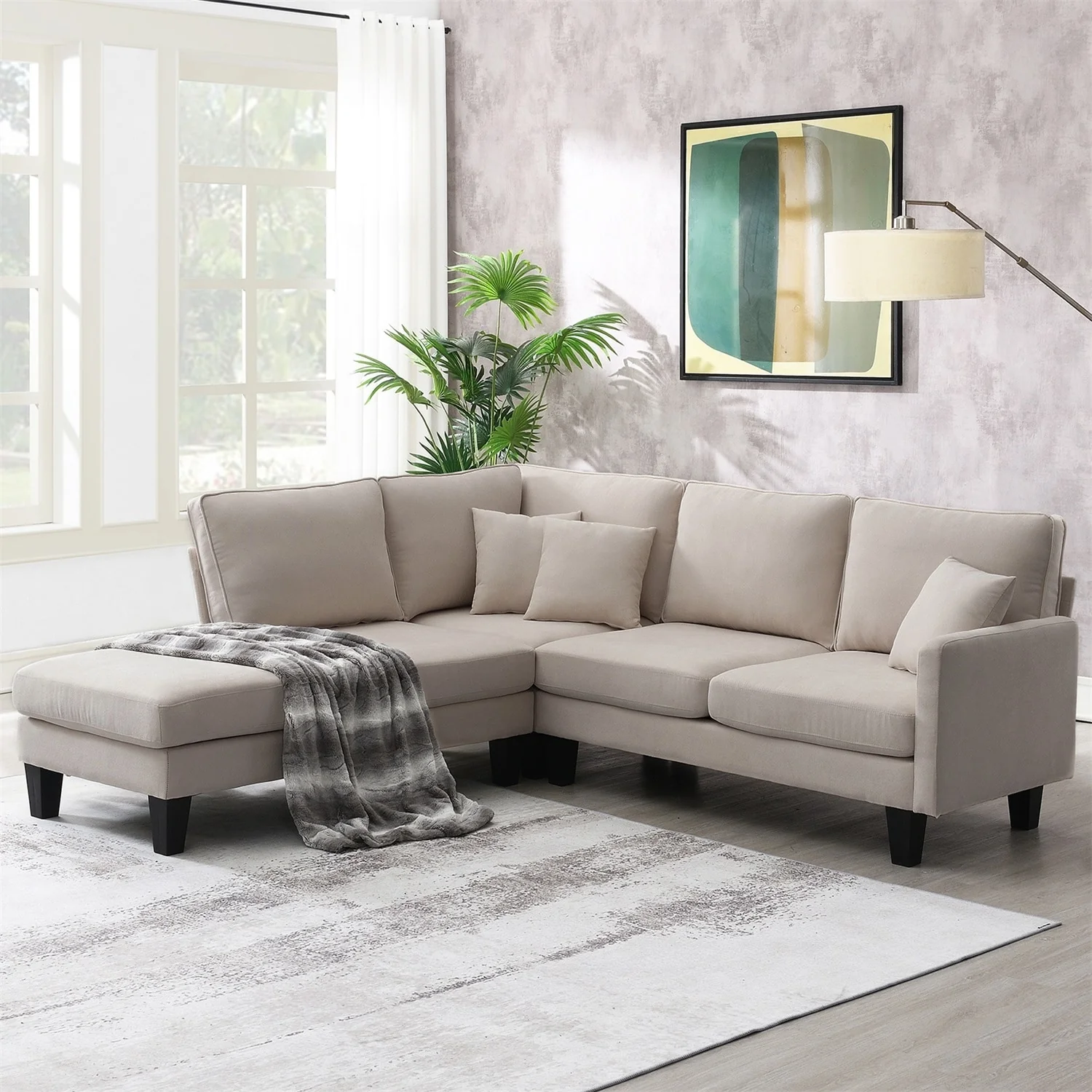 4-seat Sectional Sofa with Curved Ottoman Chaise and Side Pocket