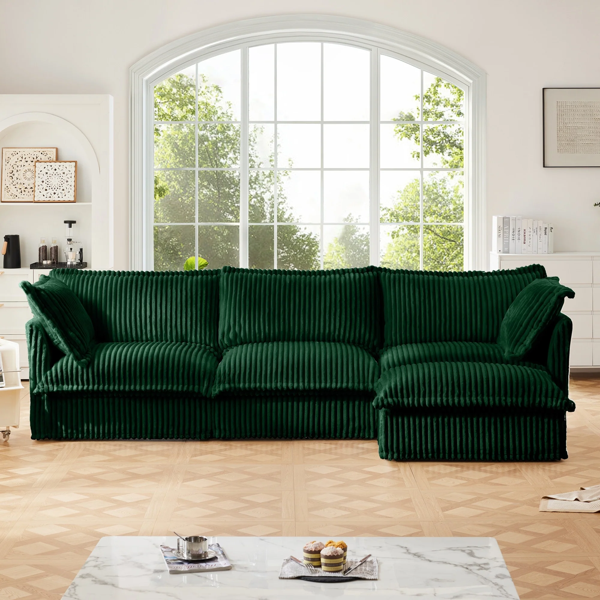 Corduroy 3-Seater Armless Sectional Sofa with Reversible Ottoman