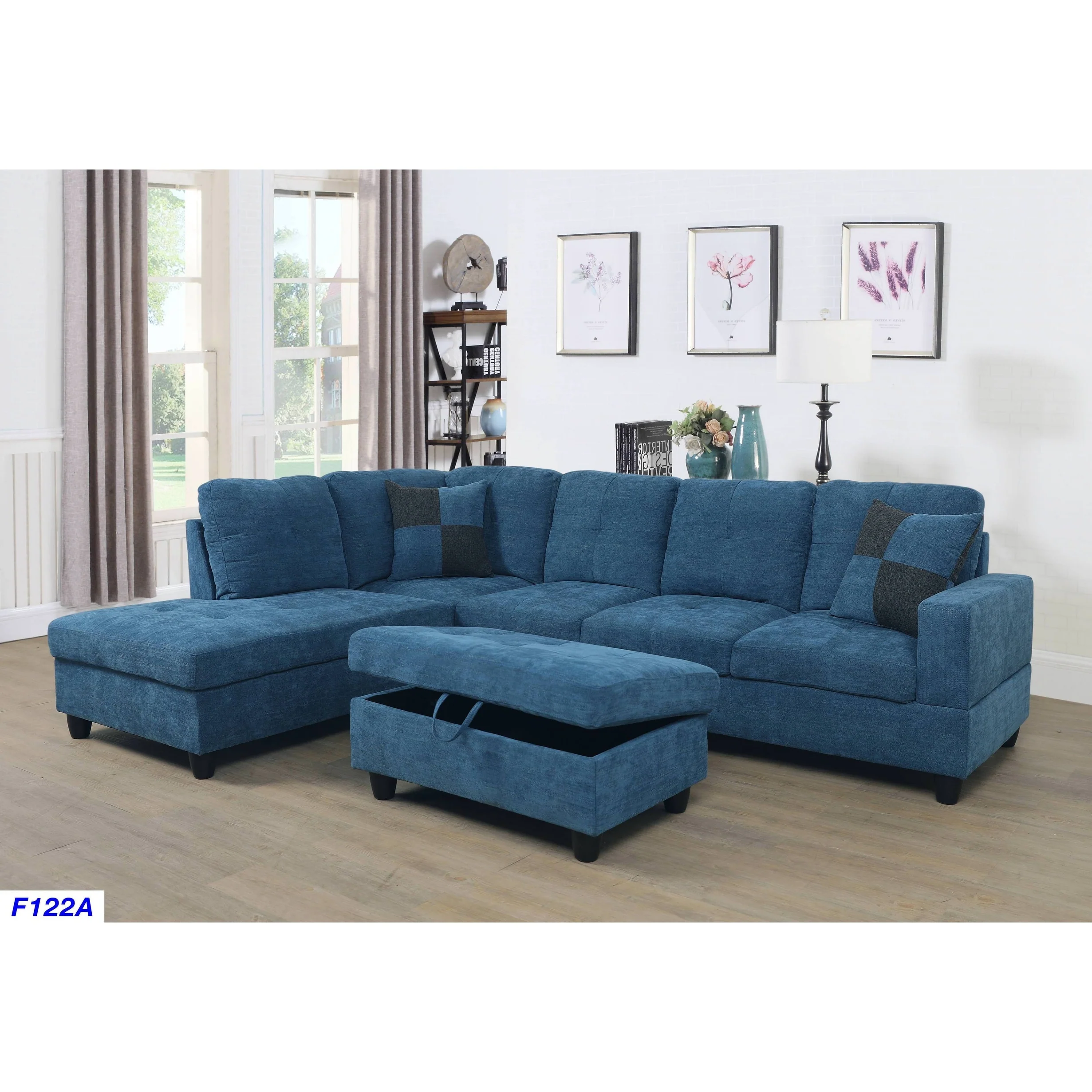 3-Seat L-Shaped Chenille Sofa with Storage Ottoman, USB-C Ports