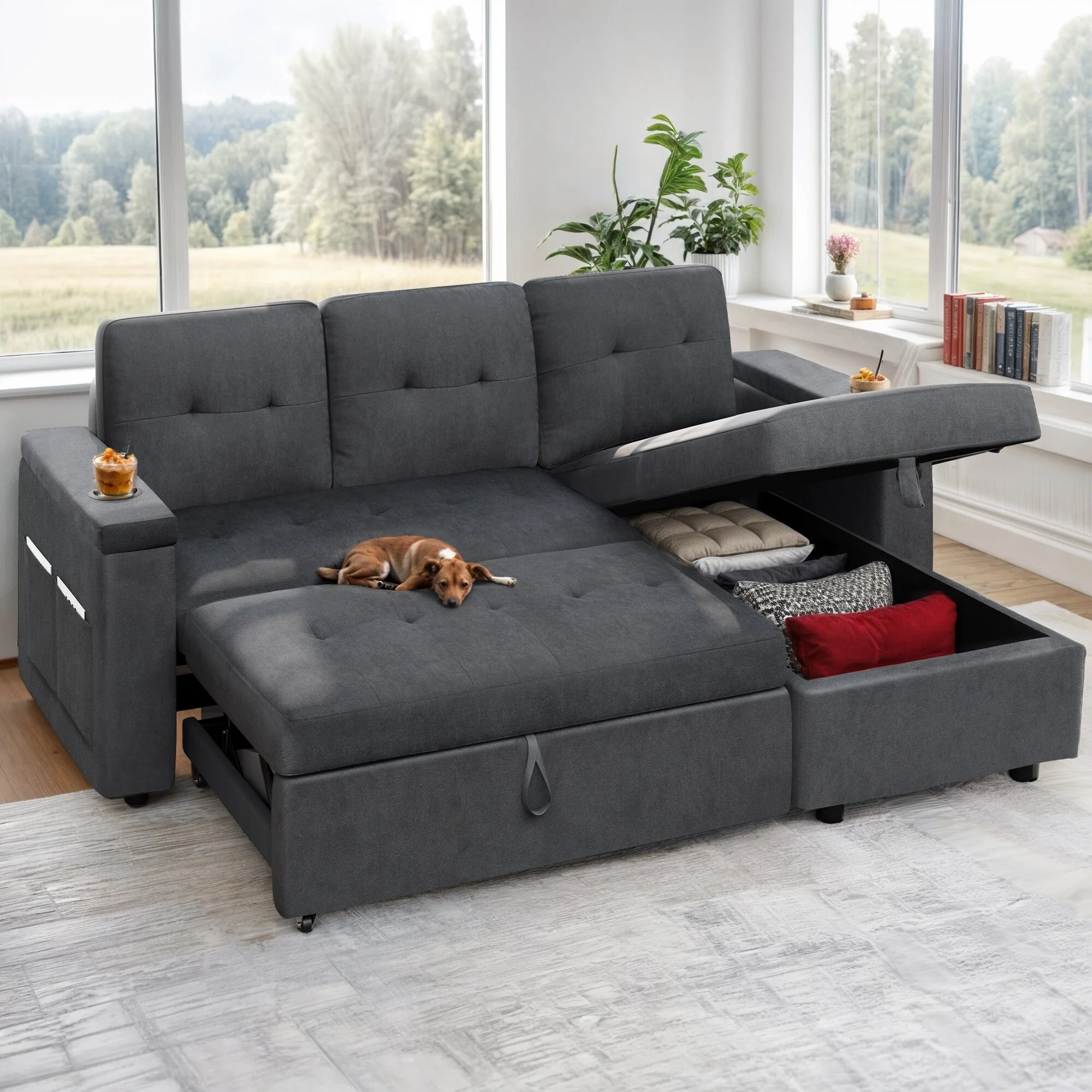 Moasis 85 Upholstered Pull Out Grey Sofa Bed Sectional L Sofa