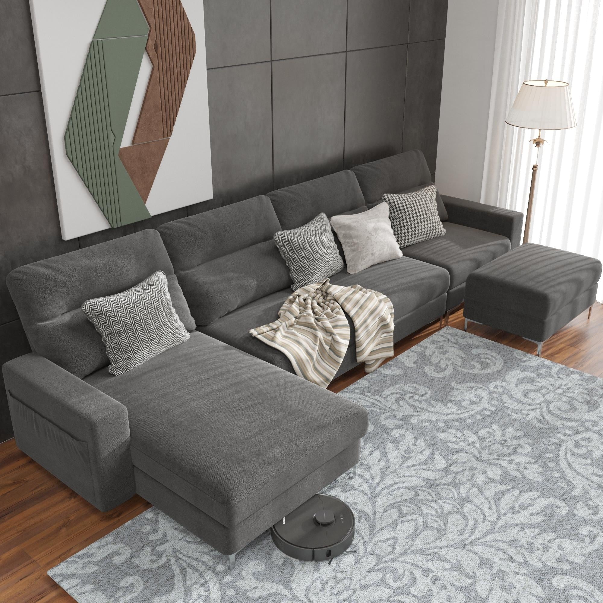 Sectional Sofa Living Room with L Shape Chaise Lounge and cup holder