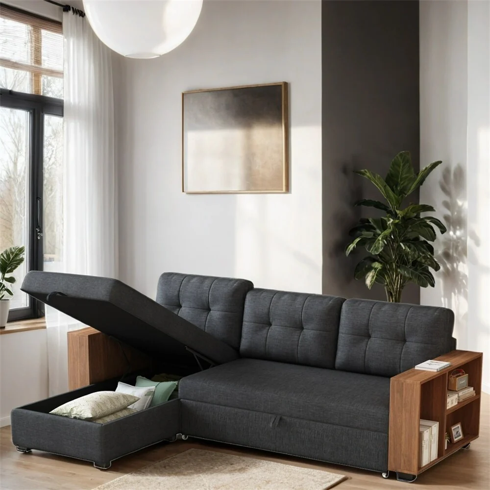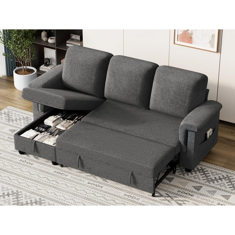 Upholstered Pull Out Sectional Sofa with Storage Chaise
