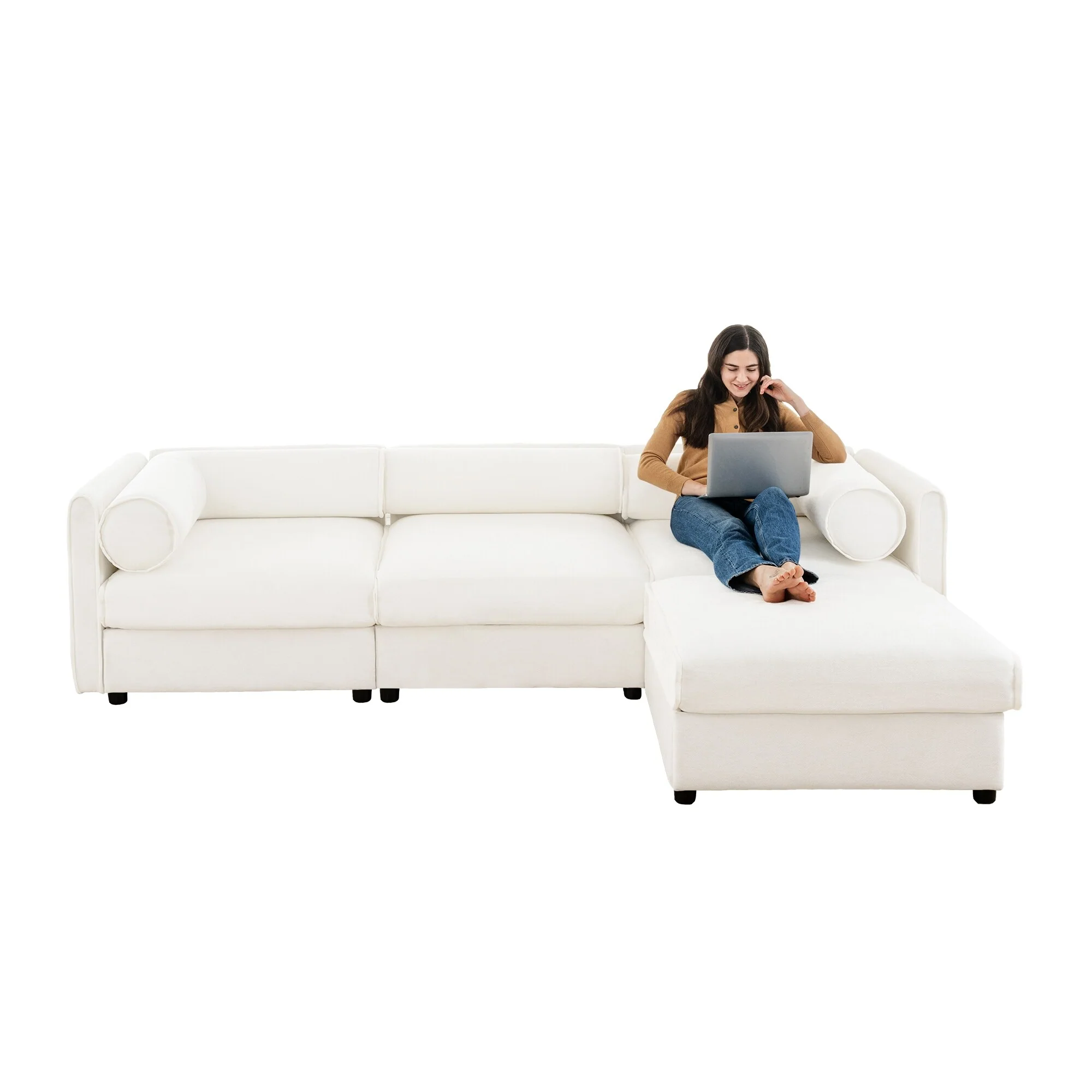 3 Seater L Shaped Sectional Sofa 109 Modular Couch with Storage Seat