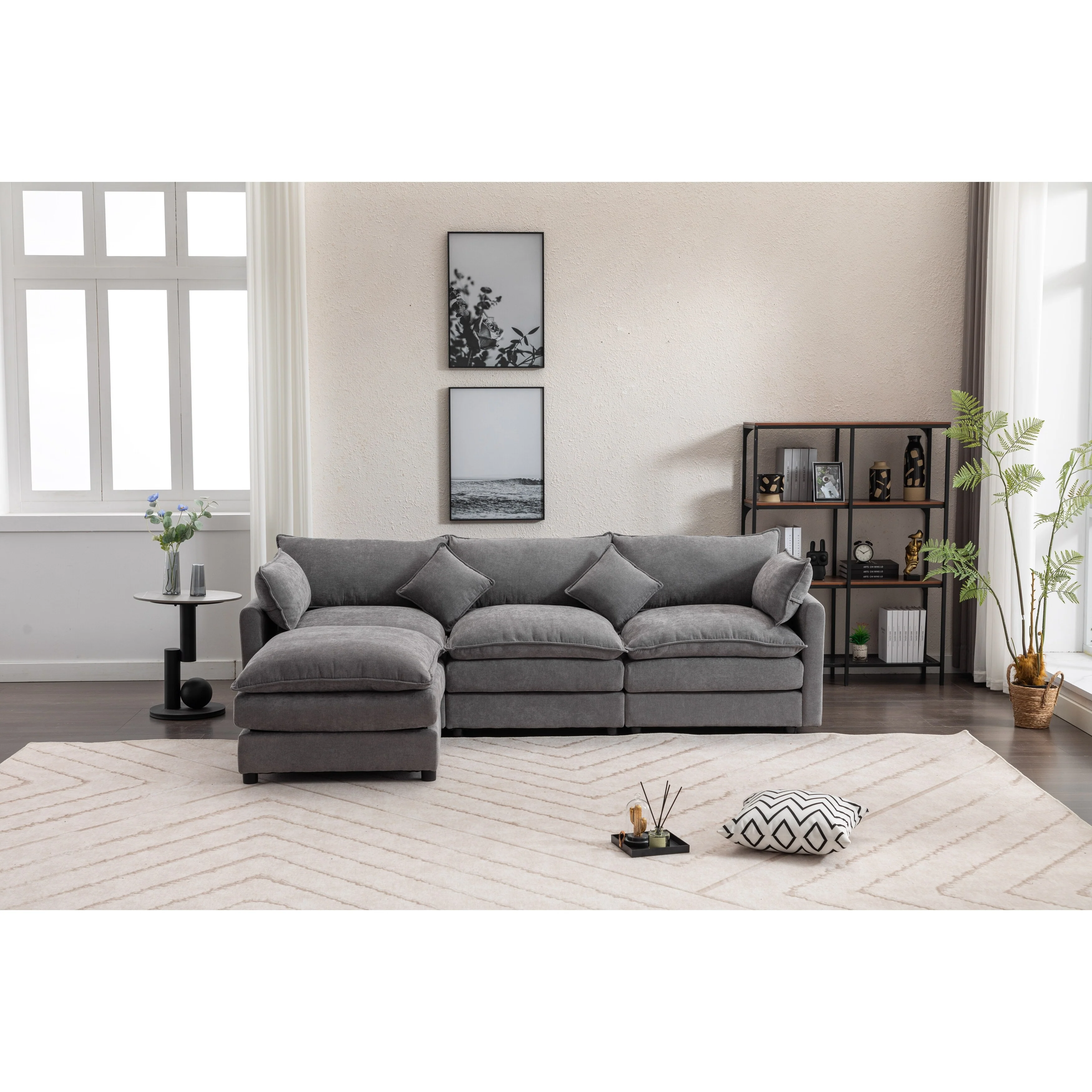 Loveseat Sectional Sofa Couch Deep Seat Cloud Sofa with 2 Ottomans