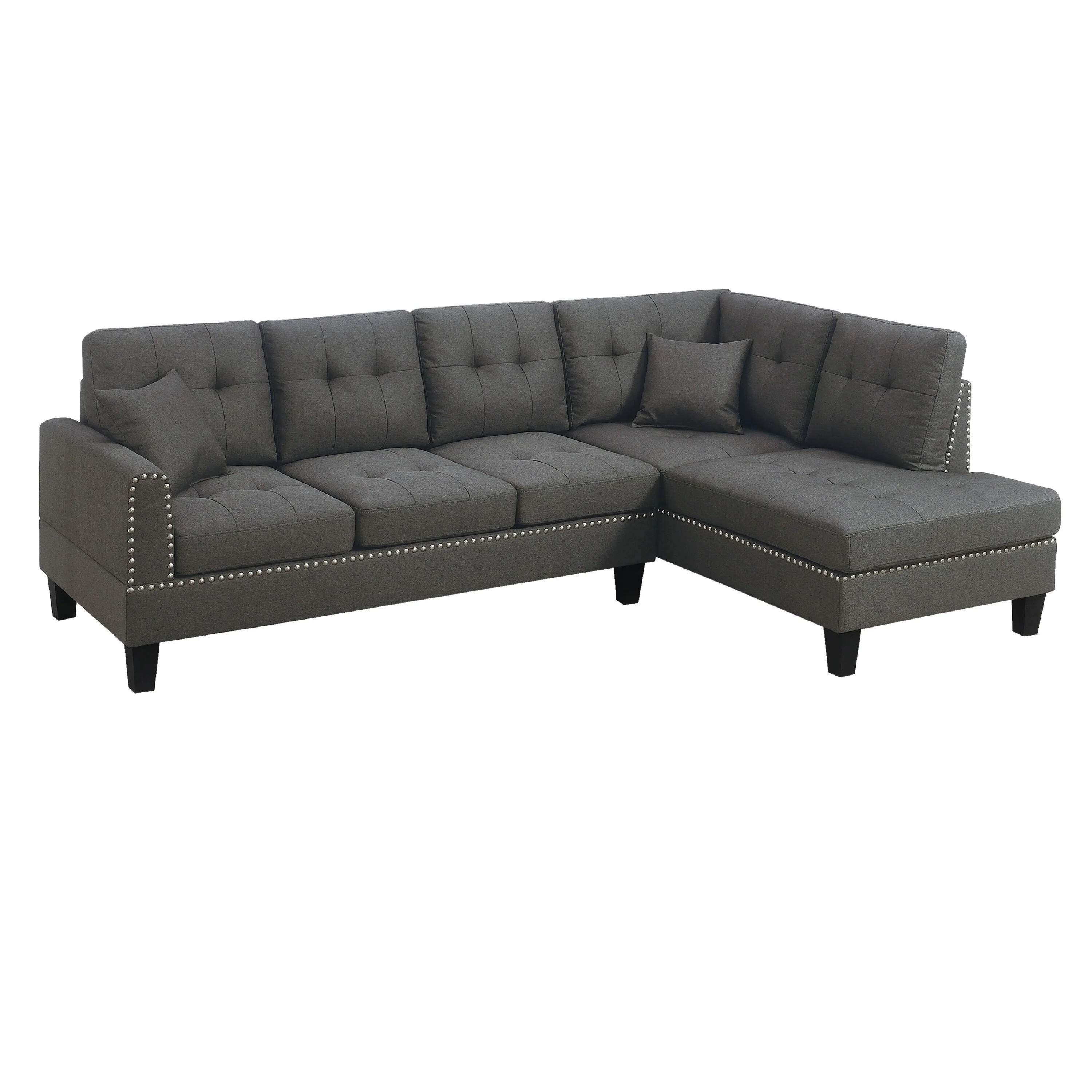 Ena 2pc Sectional Sofa Set with Chaise, 2 Pillows, Dark Brown Linen