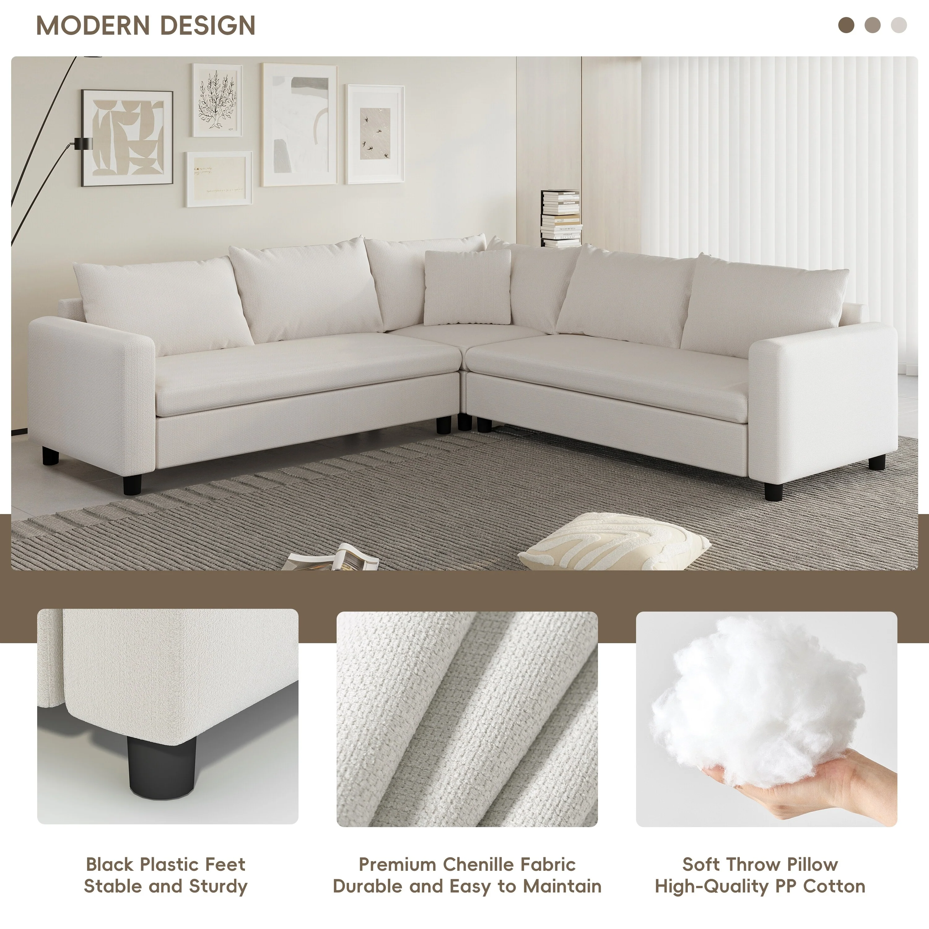 Deep Seat Sleeper Sofa Chenille Modular Couch with Pillow