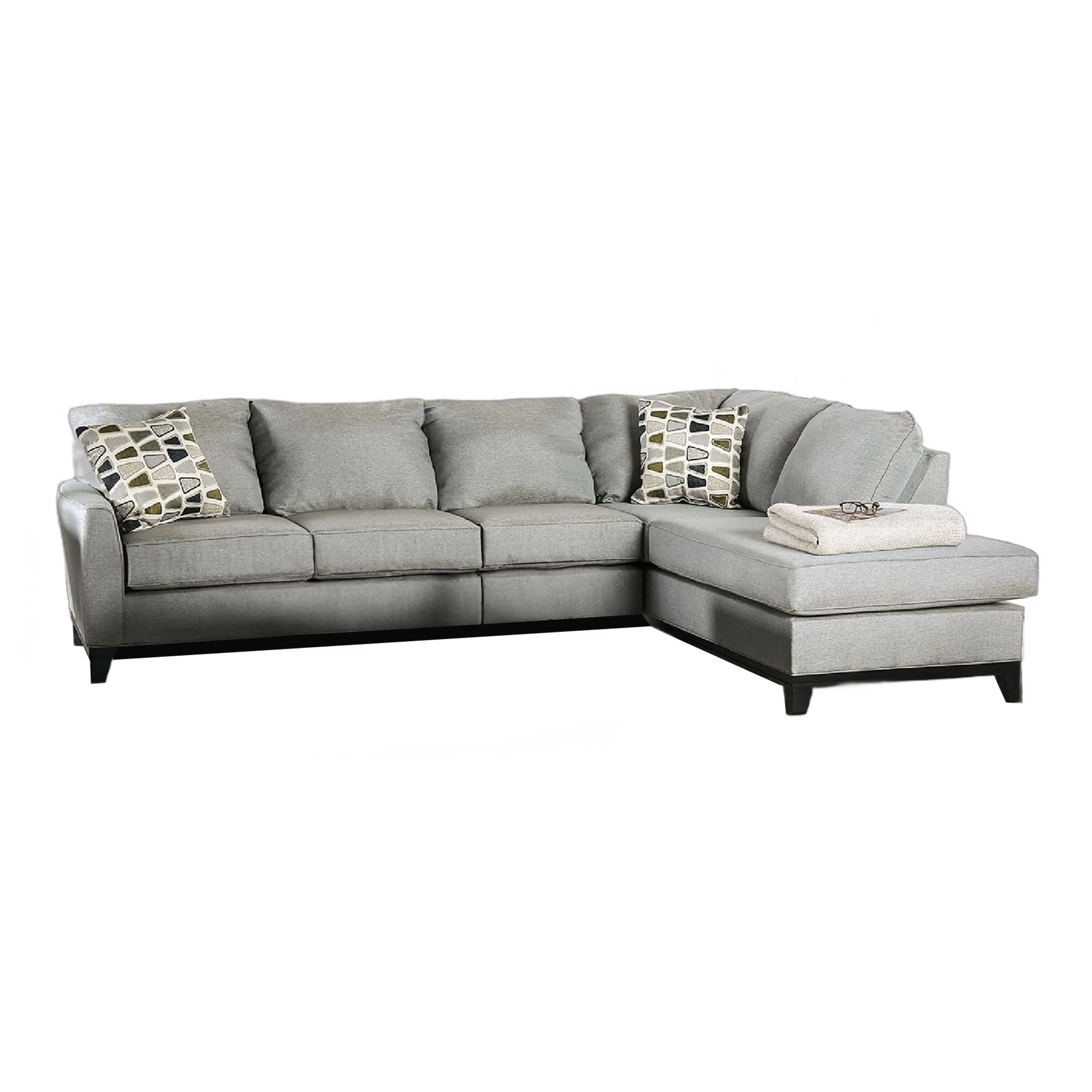 Brim Sectional L Sofa Chaise, 122 Inch Soft Gray, 2 Accent Pillows