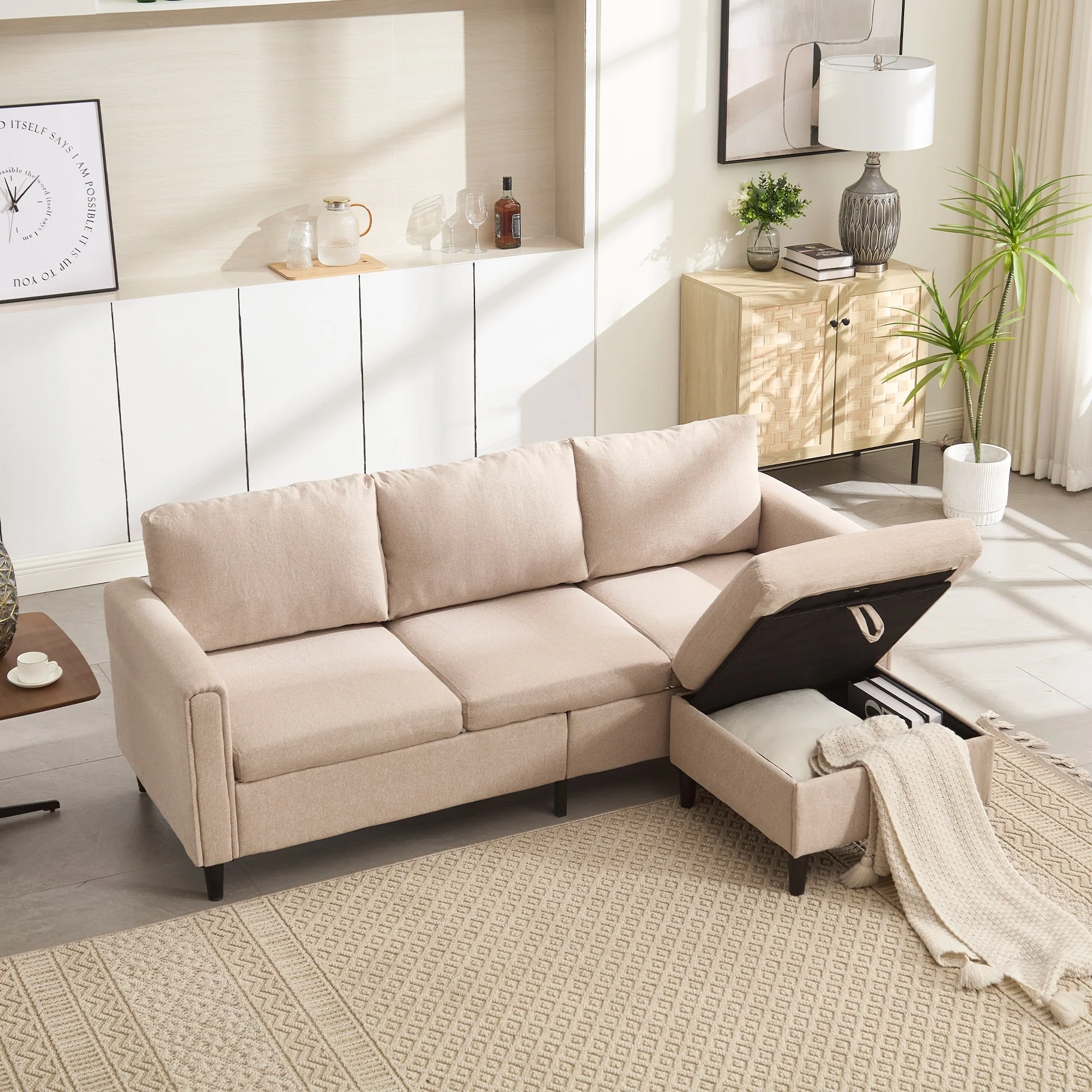 72 Wooden Frame 3-Seater L-Shaped Sectional Sofa with Storage