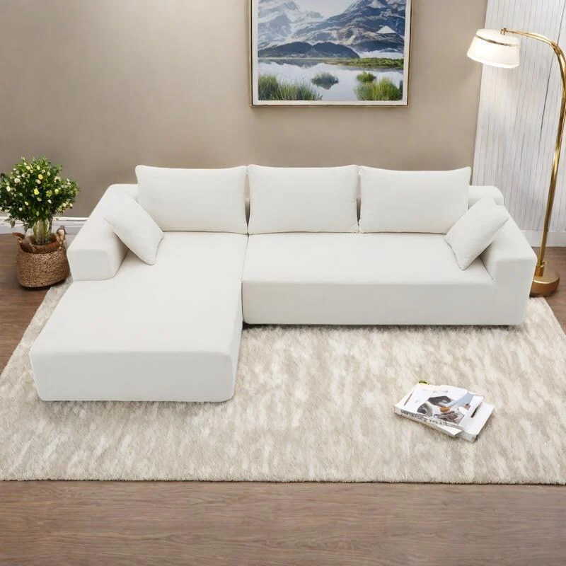 Large L-Shaped Modular Sofa, 6-Seat Velvet Sectional Couch