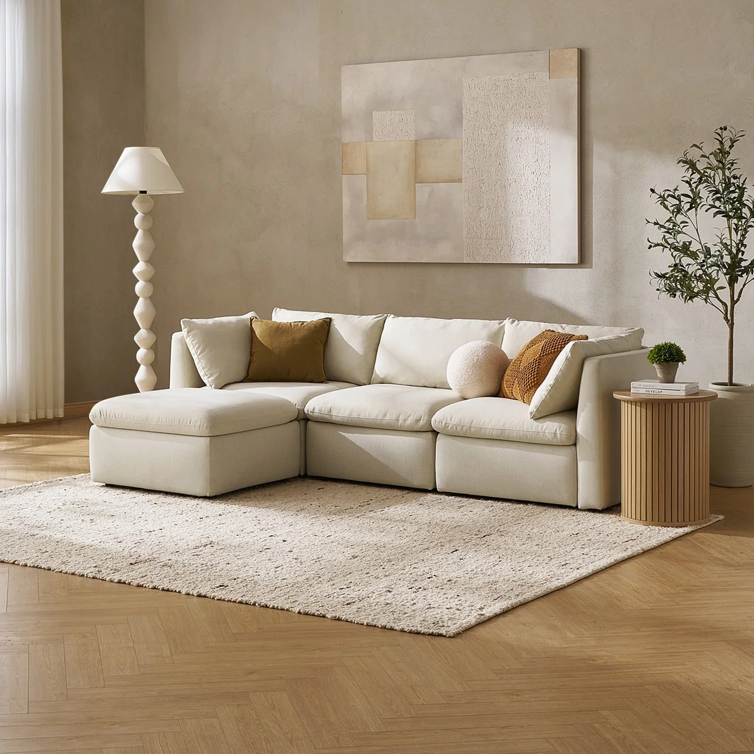 Mopio Macy Modular Sectional Sofa, Modern Cloud Off White