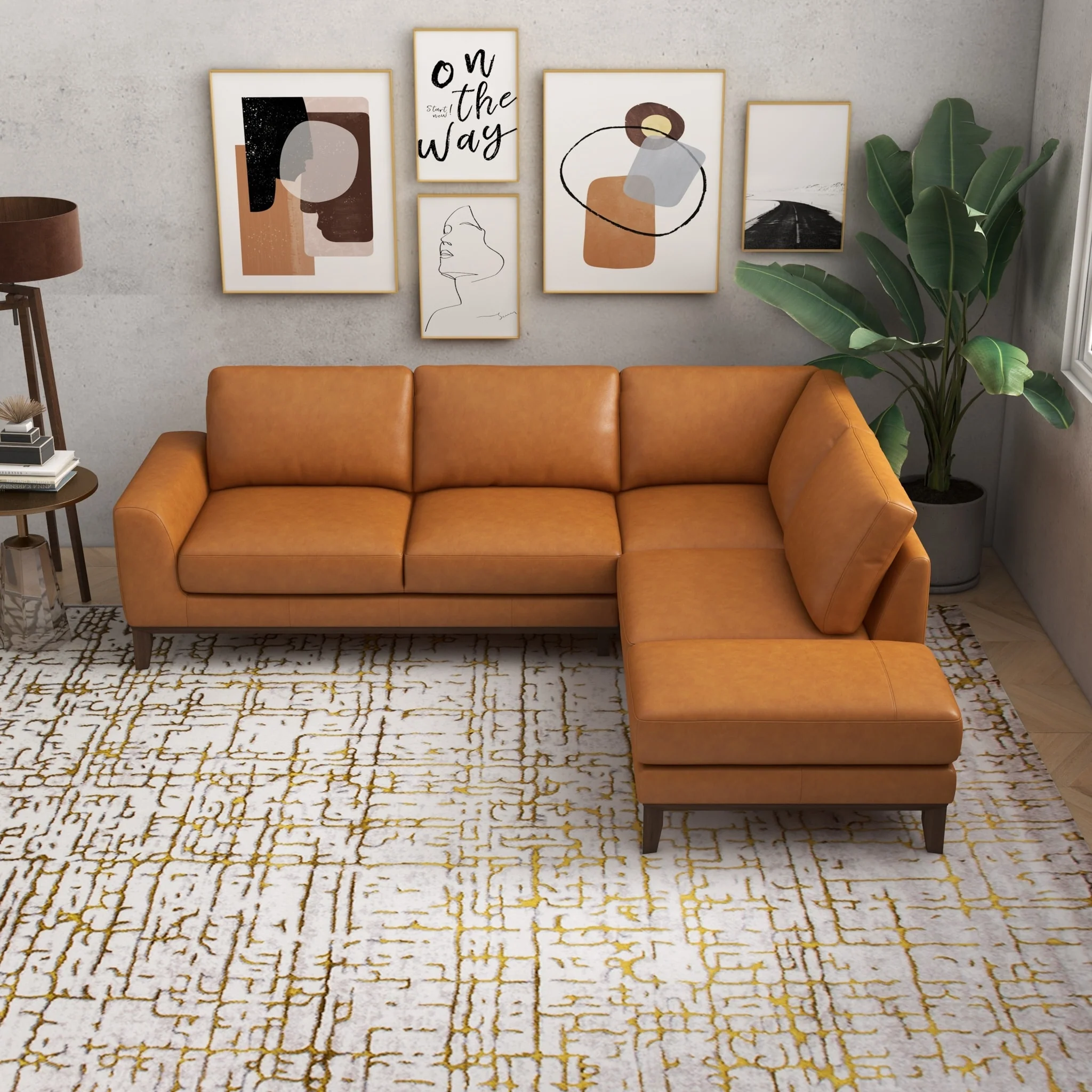 Miamo Mid Century Living Room Top Leather Corner Sectional Sofa