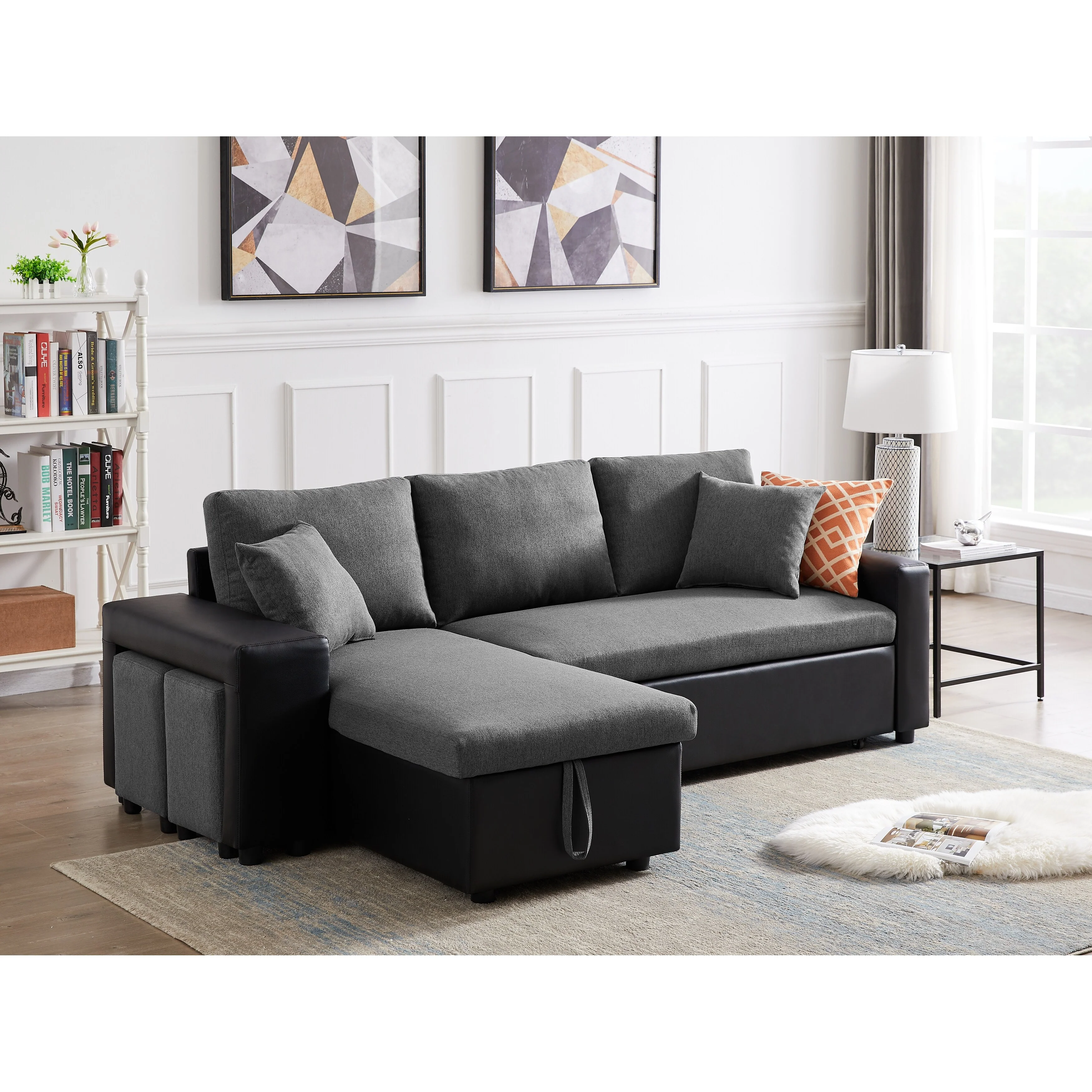 83 L-Shaped 4-Seat Convertible Sofa