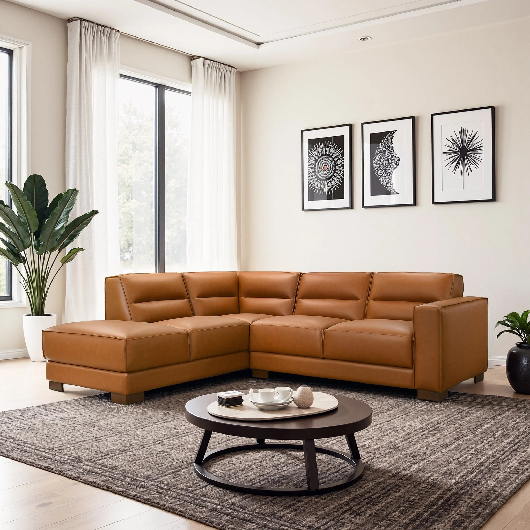 Mitchell Modern Premium Top Grain Italian Leather Sectional Sofa