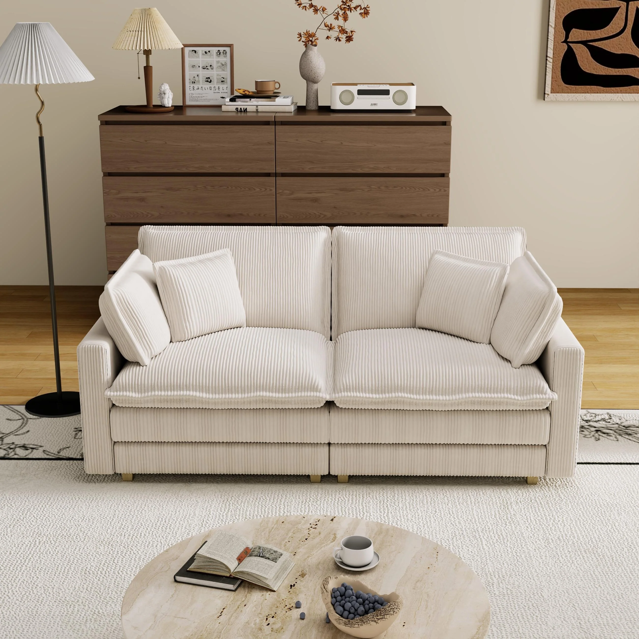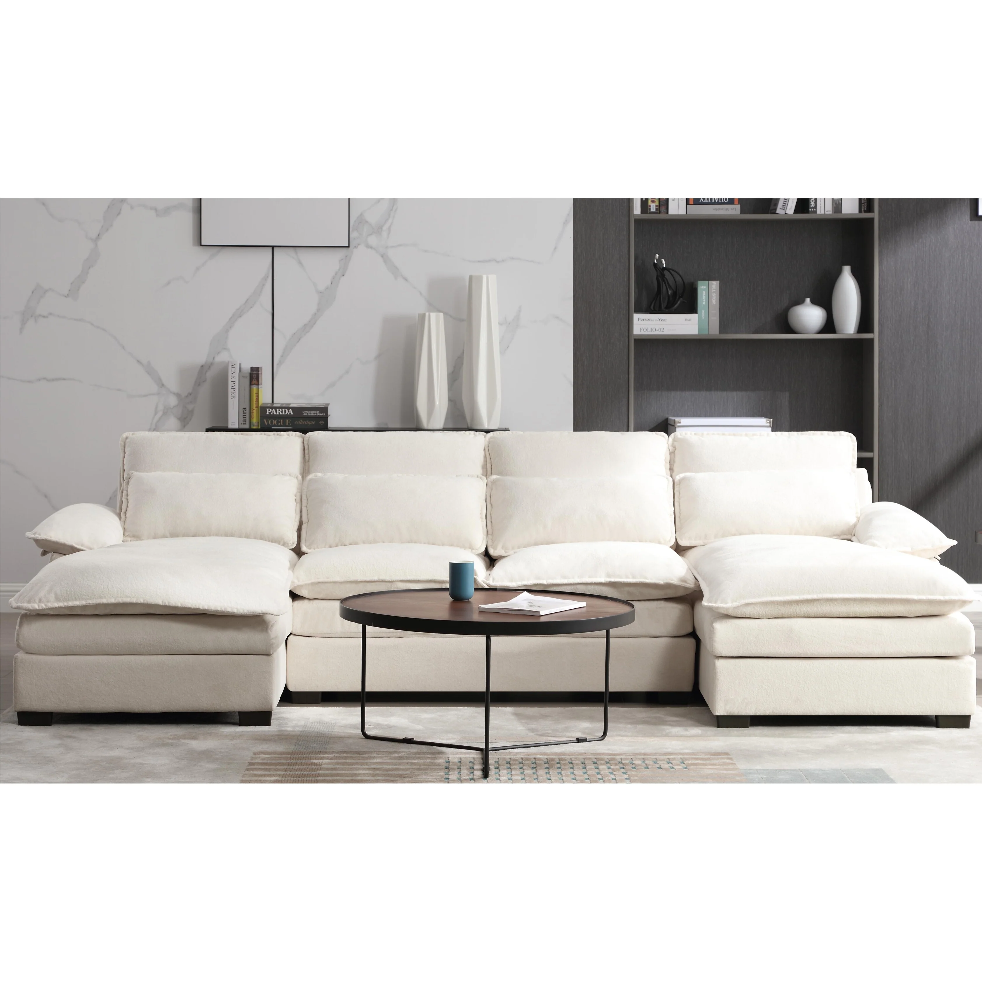 156'' Spacious L-Shaped 5-Seater Sofa in Plush Boucle Fabric