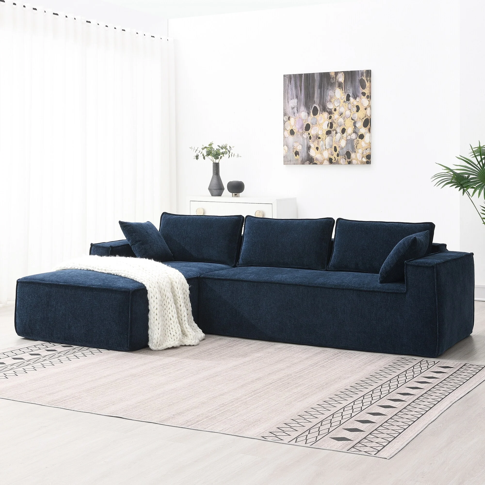 L-Shaped Linen Sectional Sofa Modern Comfortable Sofa