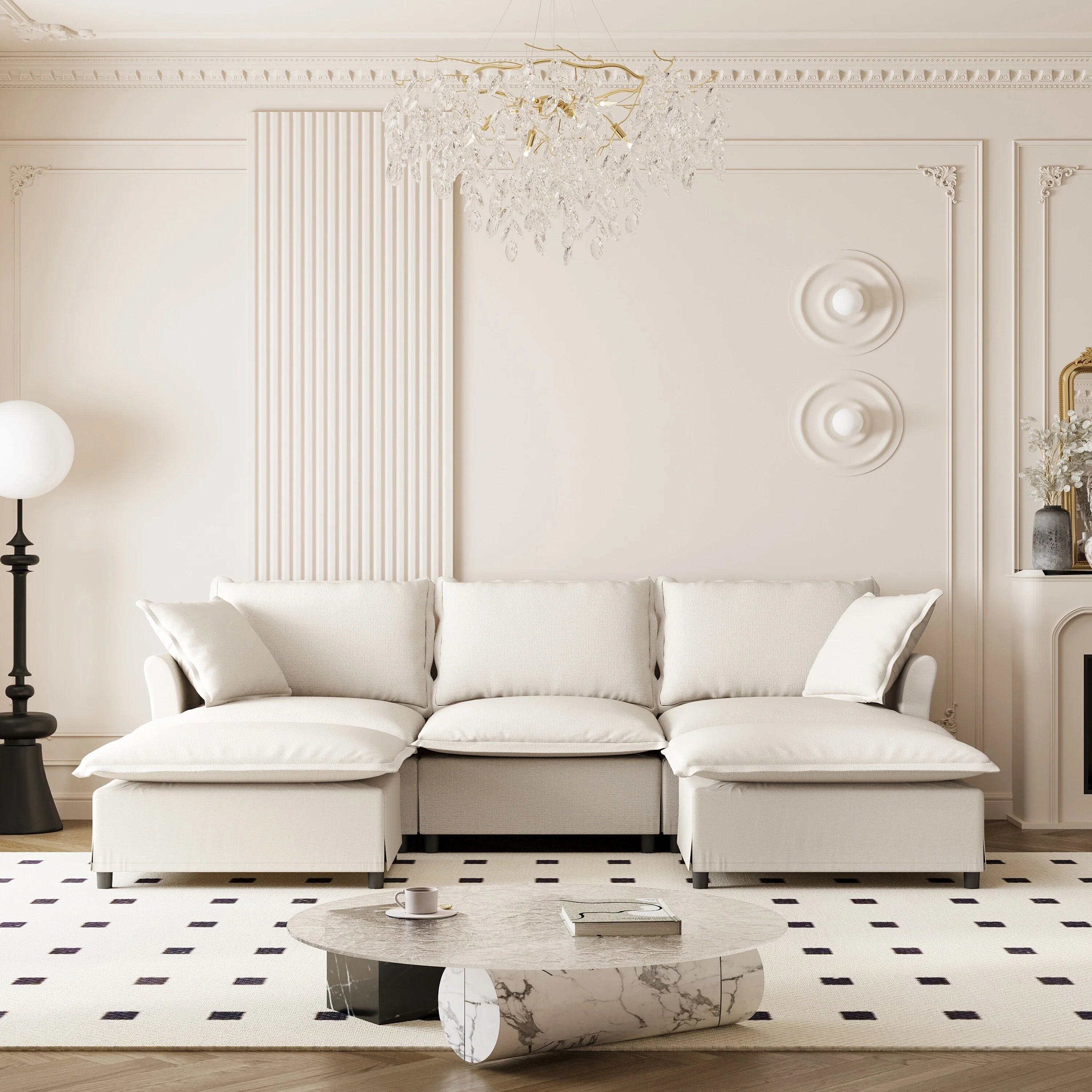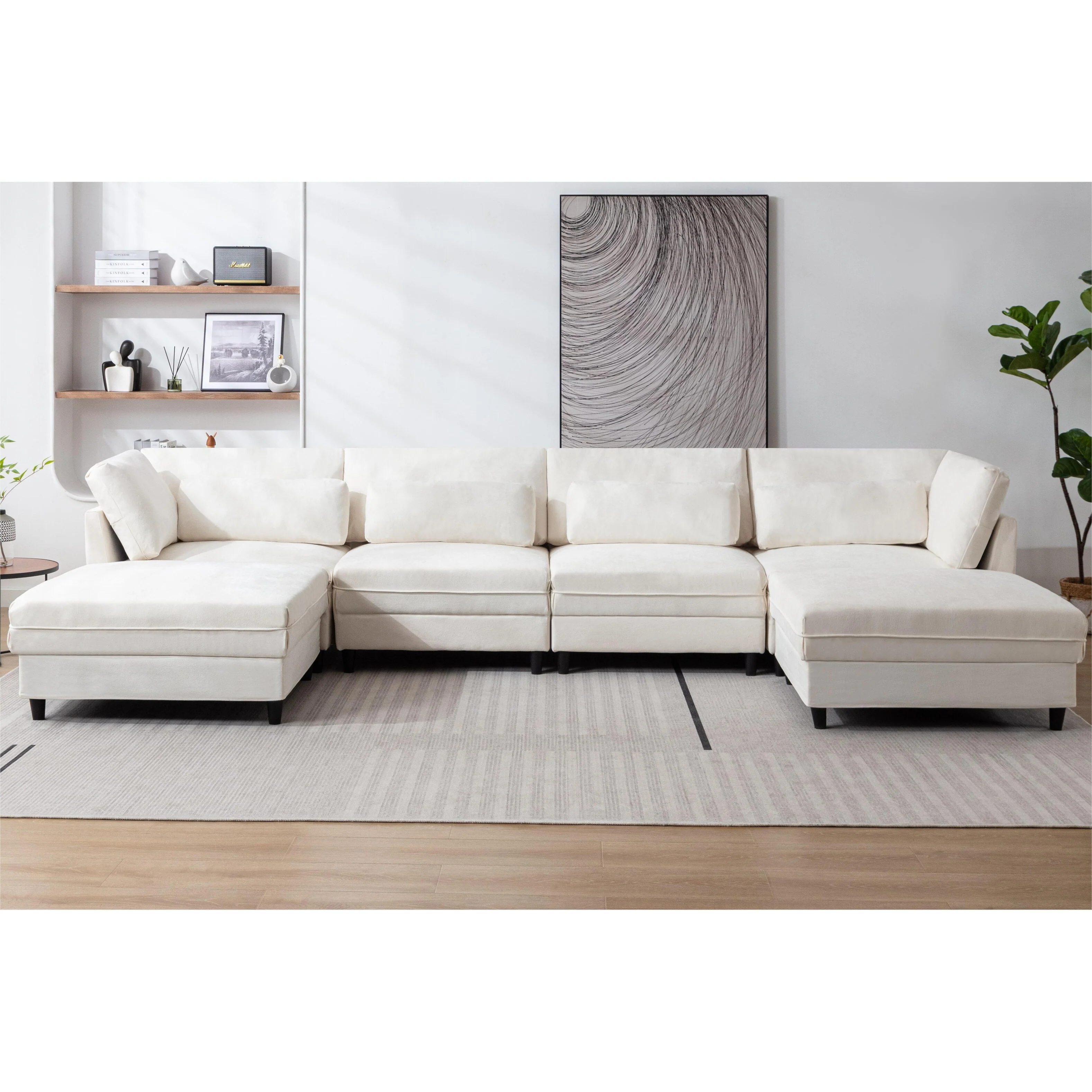 145 Fabric 6-Seat U-Shaped Sectional Sofa with Chaise & Ottomans