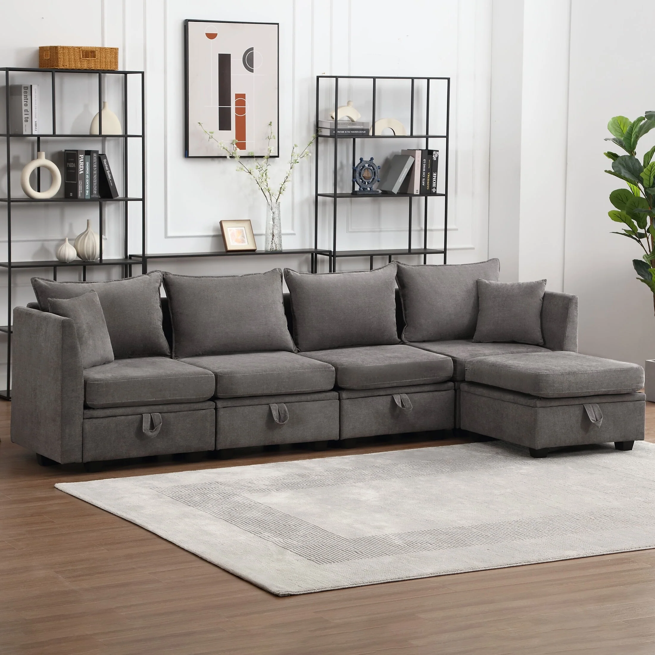 101.2 Chenille Modular Sectional Sofa with Deep Seating, Foam