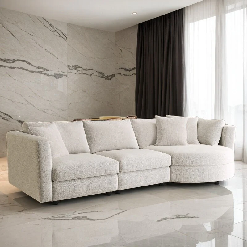 Ames 136 Boucle Fabric Upholstered 4pc. Modular Sofa