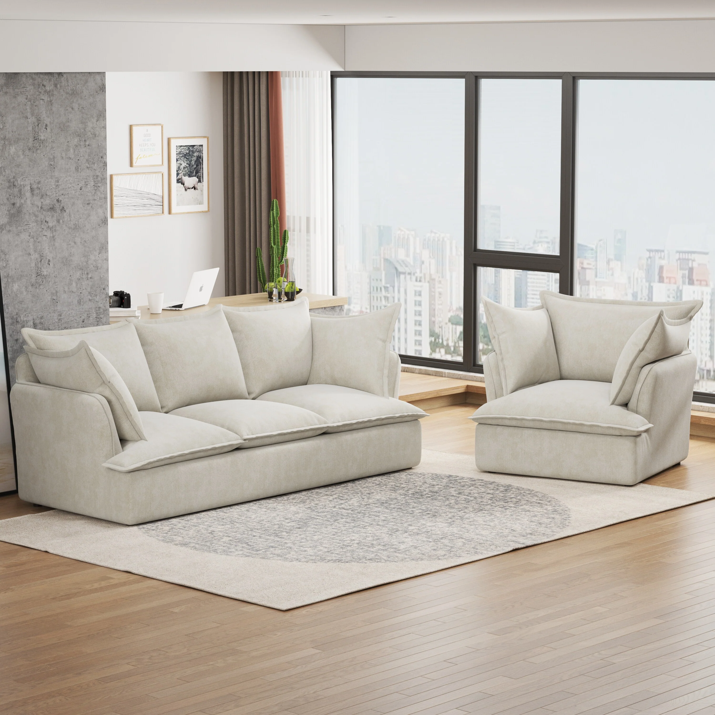 100.4 Oversized Linen 3-Seat Modular Sofa