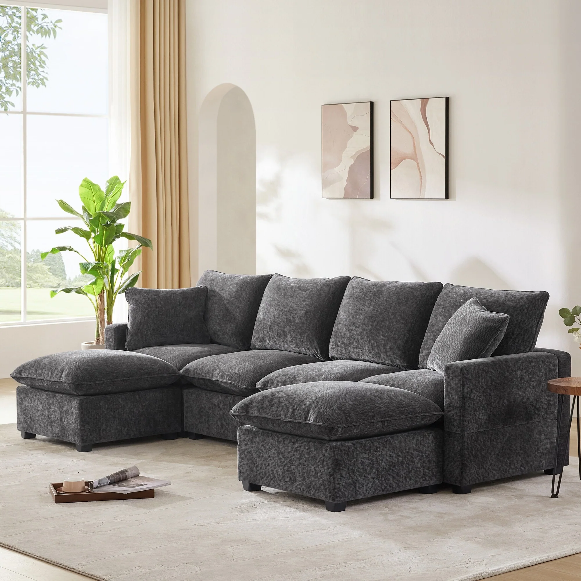 Modern Oversized Modular Sectional Sofa Set With Pillows