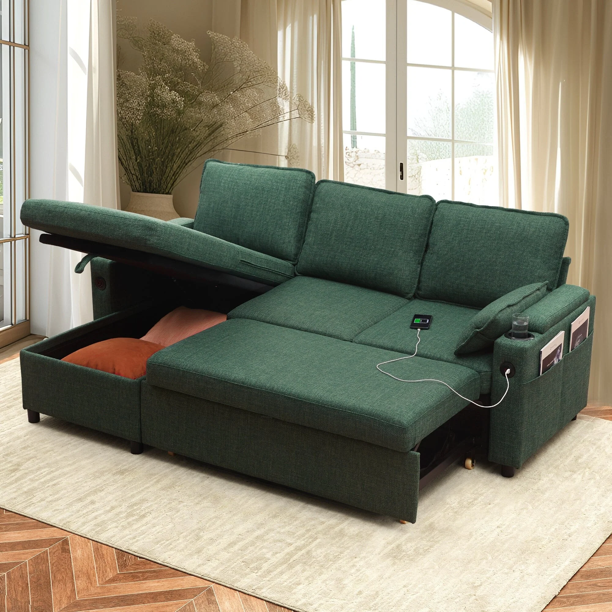 126 Versatile 8-Piece Modular Sofa Bed with Storage Ottoman Seat