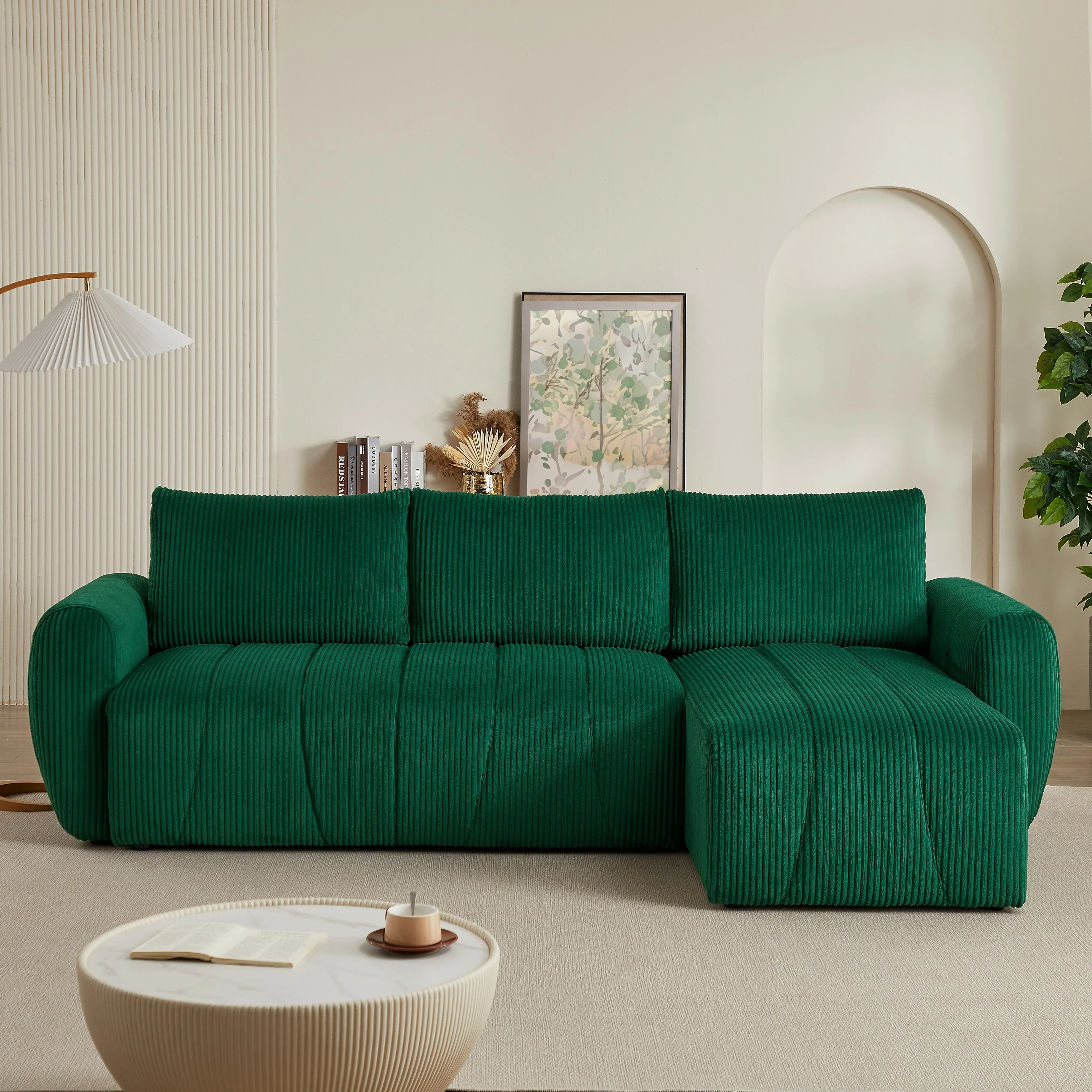 41.3 Compact Corduroy Sectional, Modular Sofa with Cushioned Storage