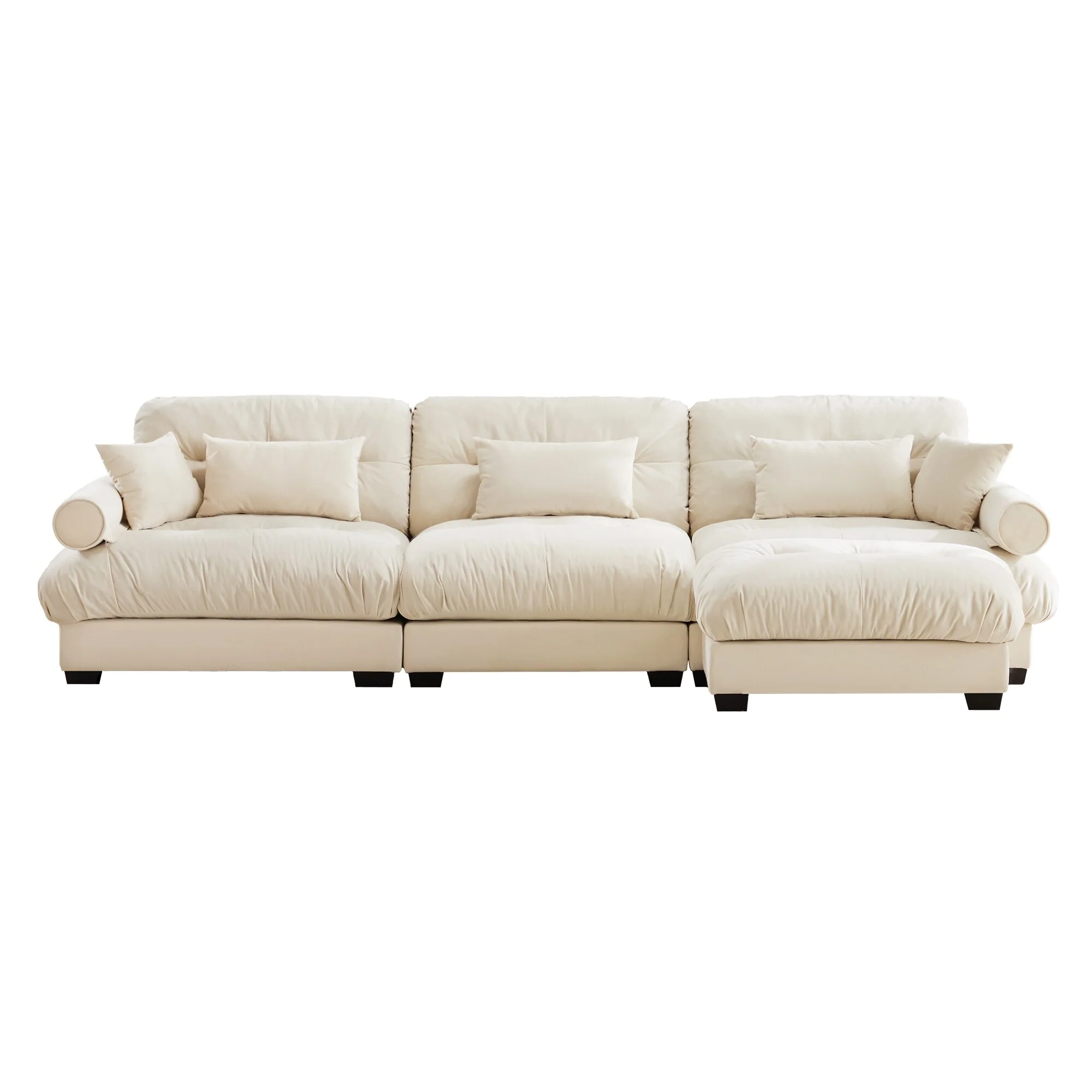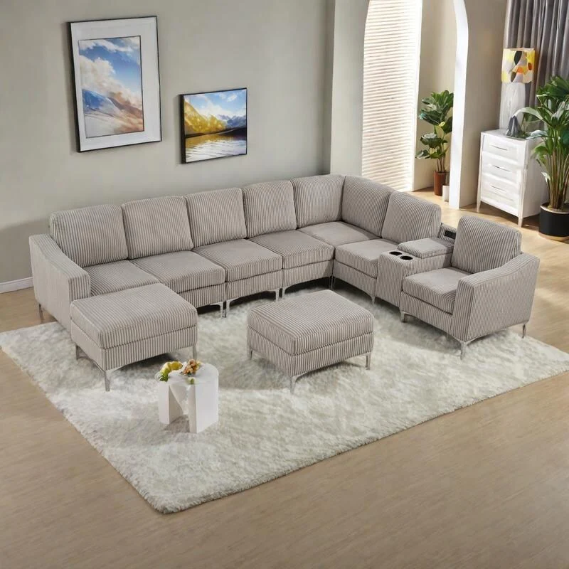Living Room Modular Sectional Sofa with Ottoman and 3 Lumbar Pillows