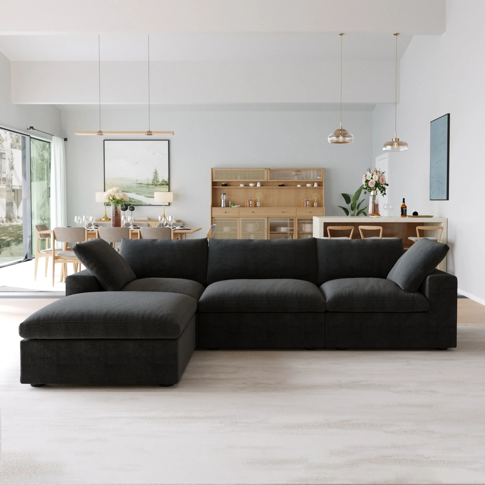 Black Commix Down Filled Overstuffed Sectional Sofa with Ottoman