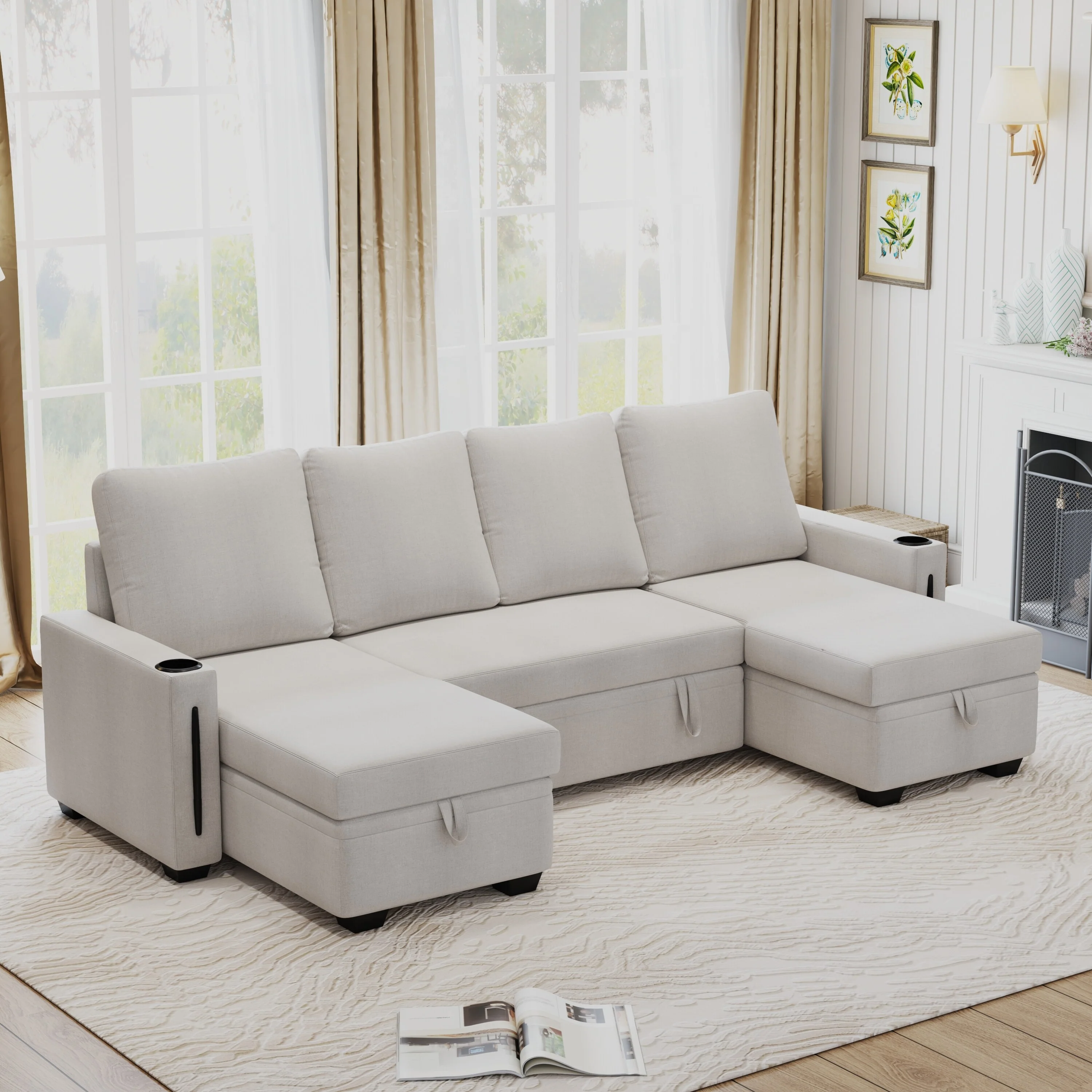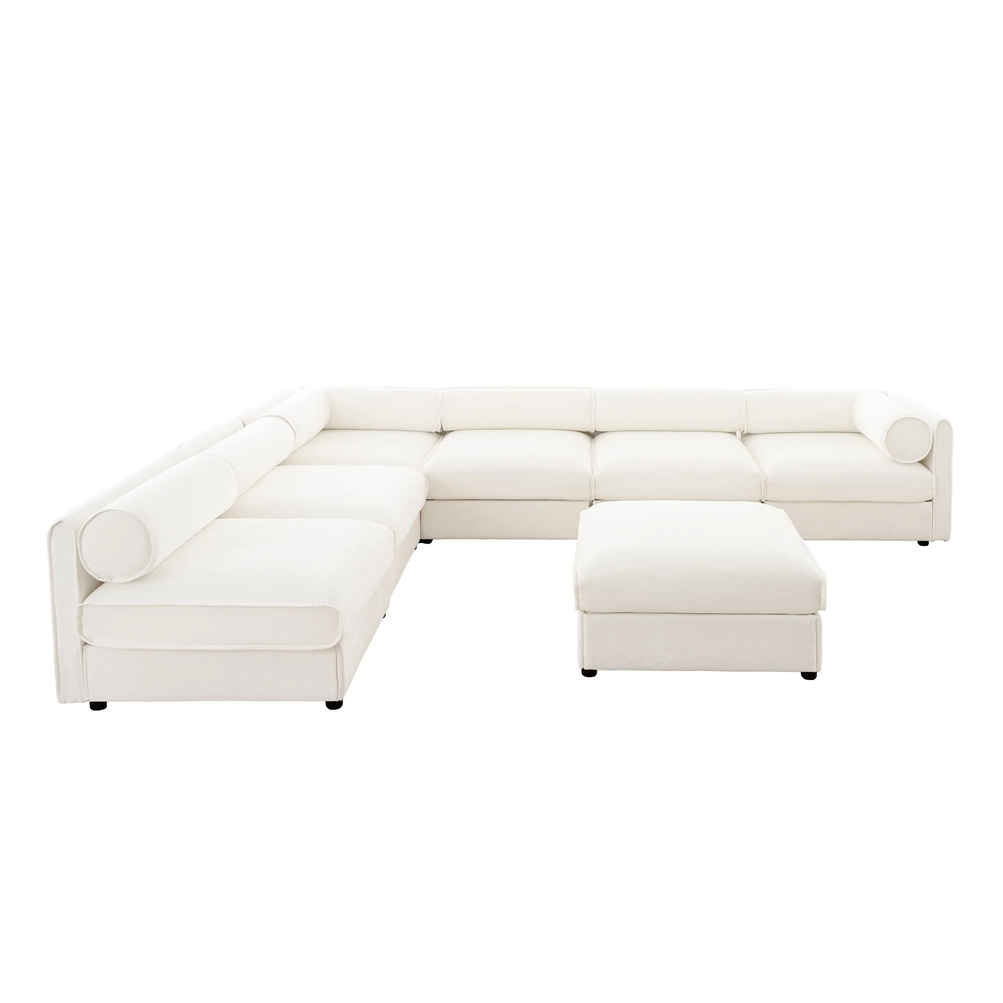U-shaped Soft-Covered Armrest Backrest Seat Sectional Sofa Beige