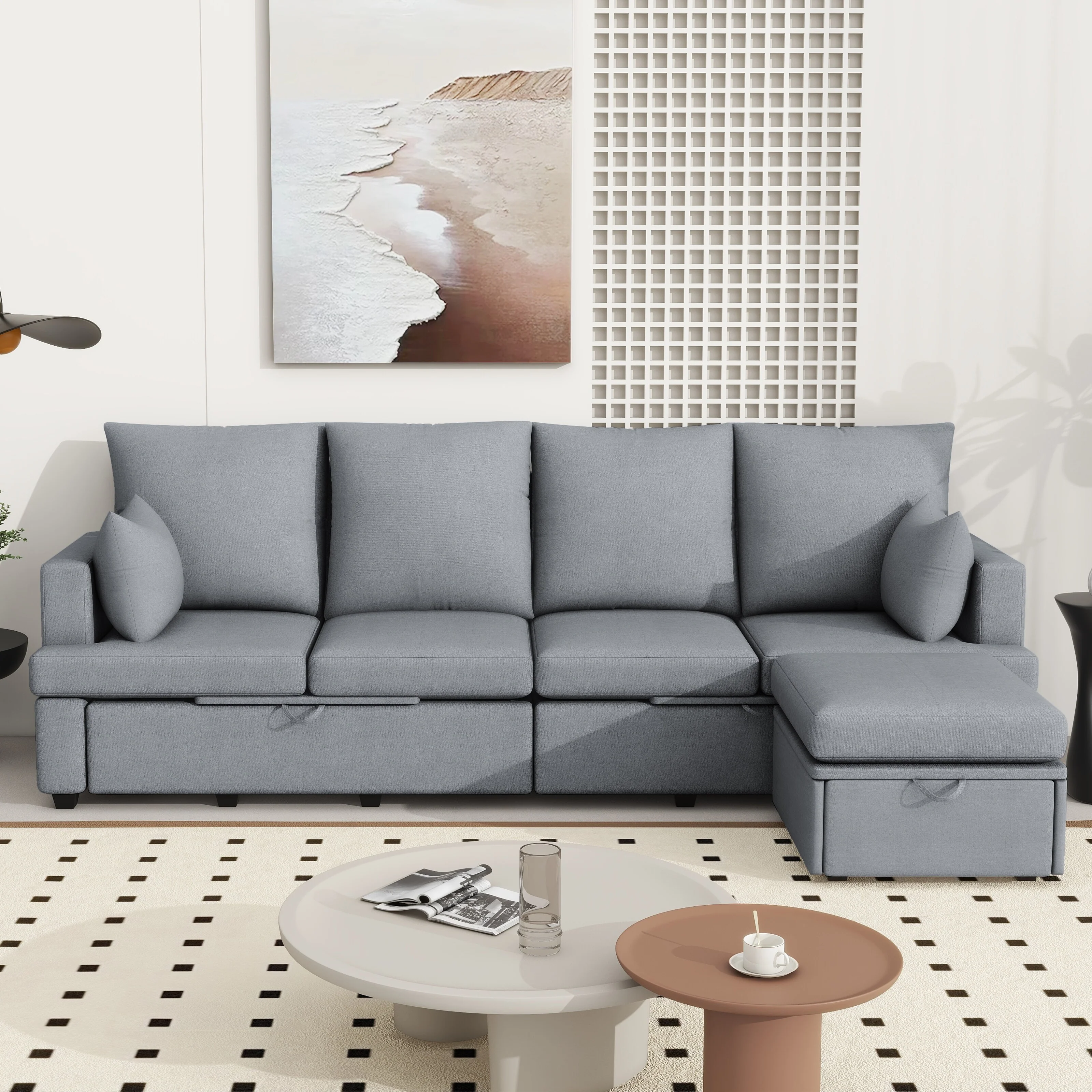 Gero Sectional Sofa Set with Reversible Storage Chaise, Light Gray