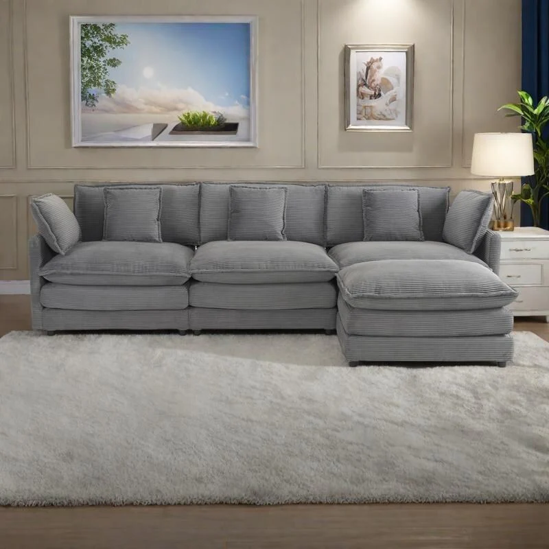 Modern Corduroy Modular Couch Sectional Sofa With Pillows