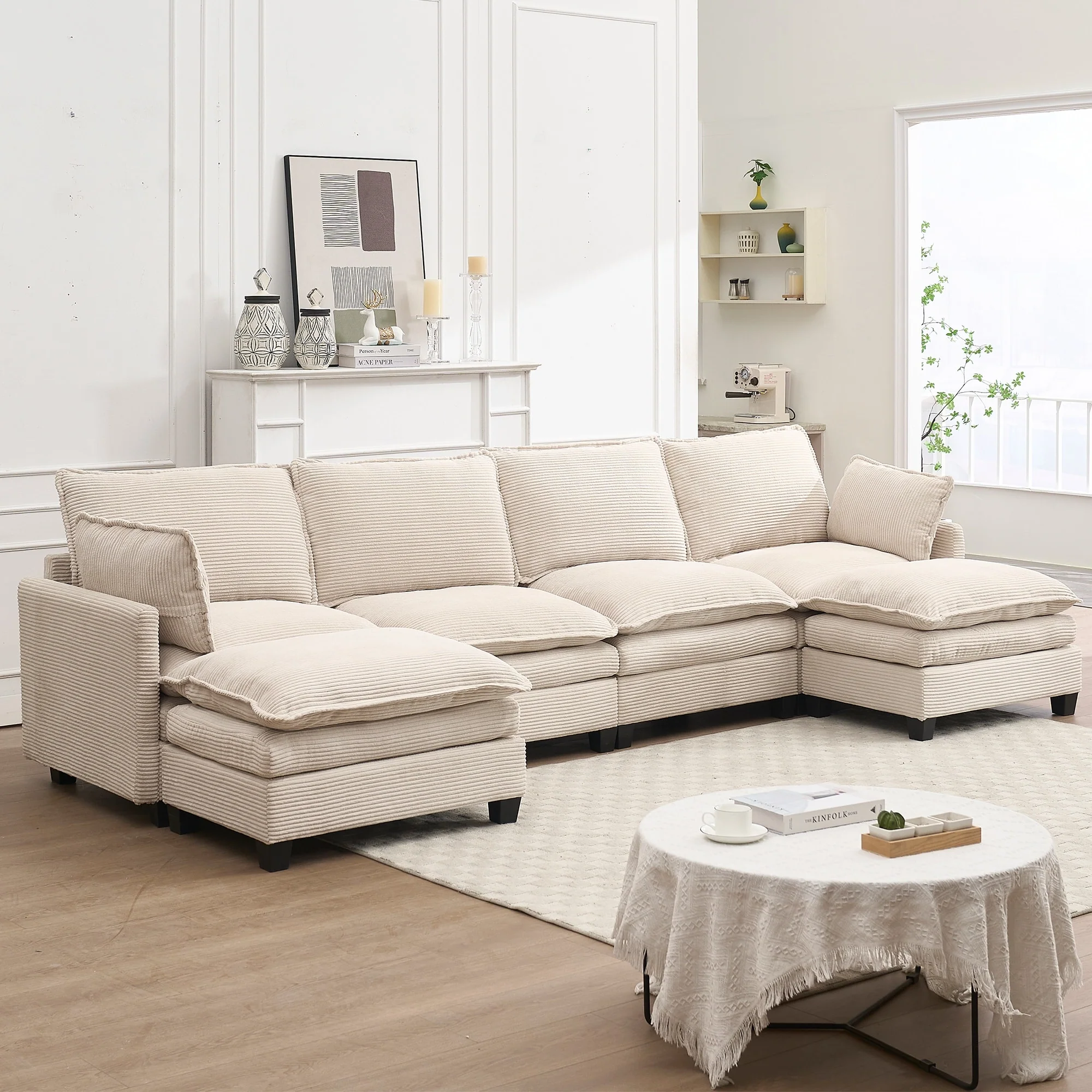 Ames 136 Boucle Fabric Upholstered 6pc. Modular Sectional