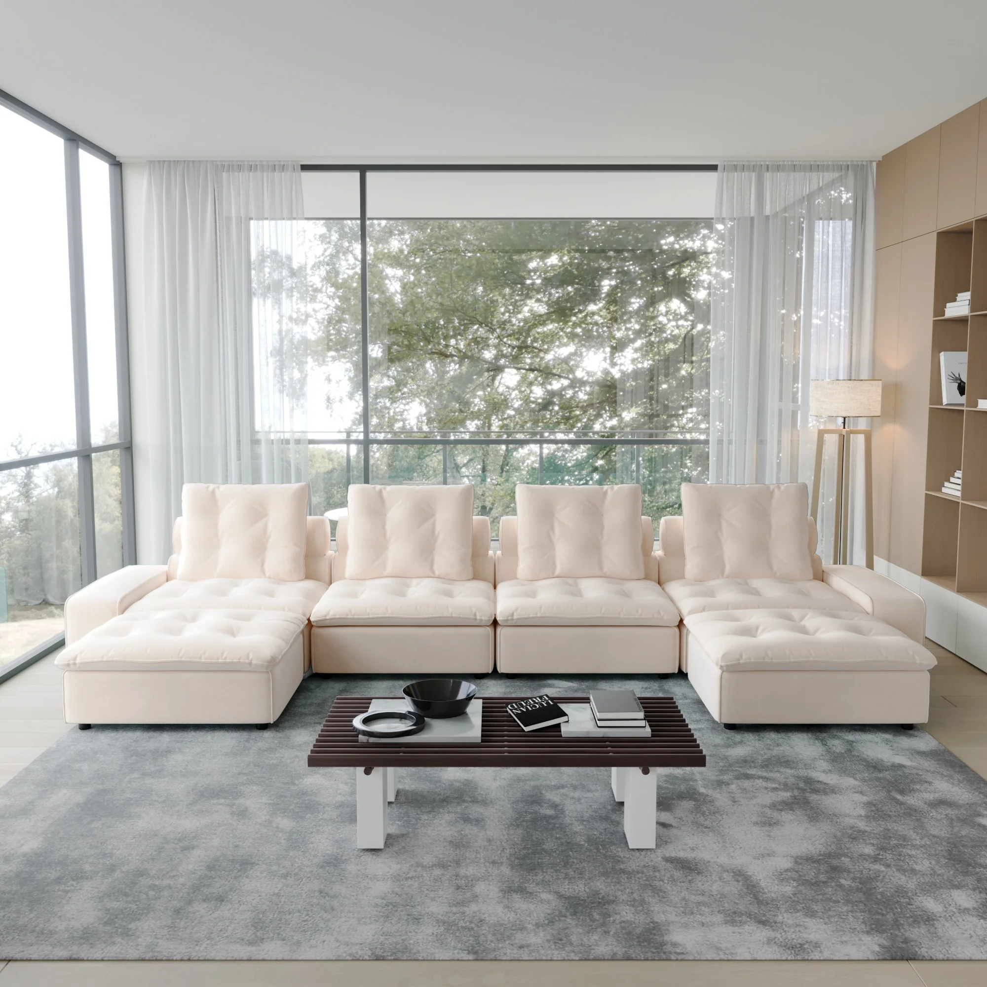 137 Velvet U-Shaped Sectional Sofa with 2 Ottomans, Deep Seat