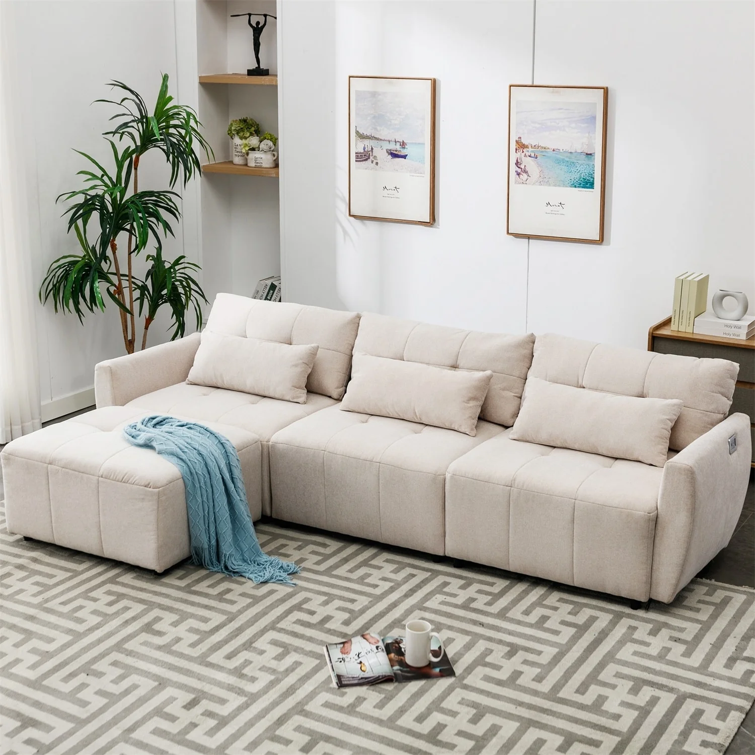Merax 3-Seat L-Shaped Sofa with Movable Ottoman and USB