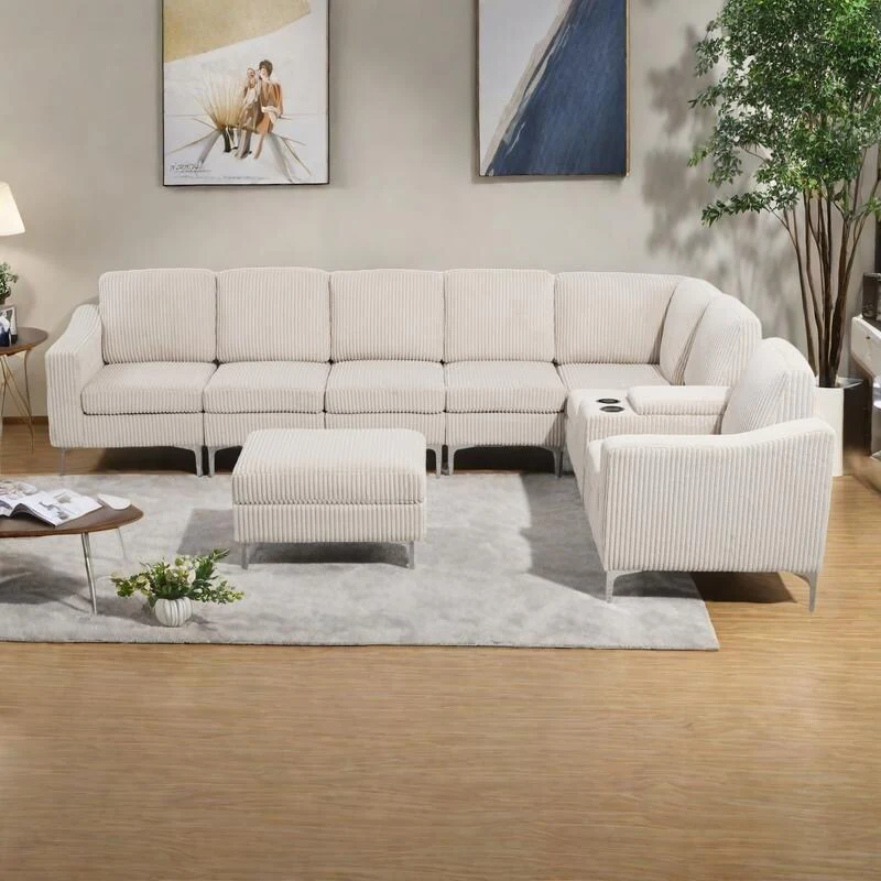 Corduroy Modular Sectional Sofa Couch With Chaise Ottoman