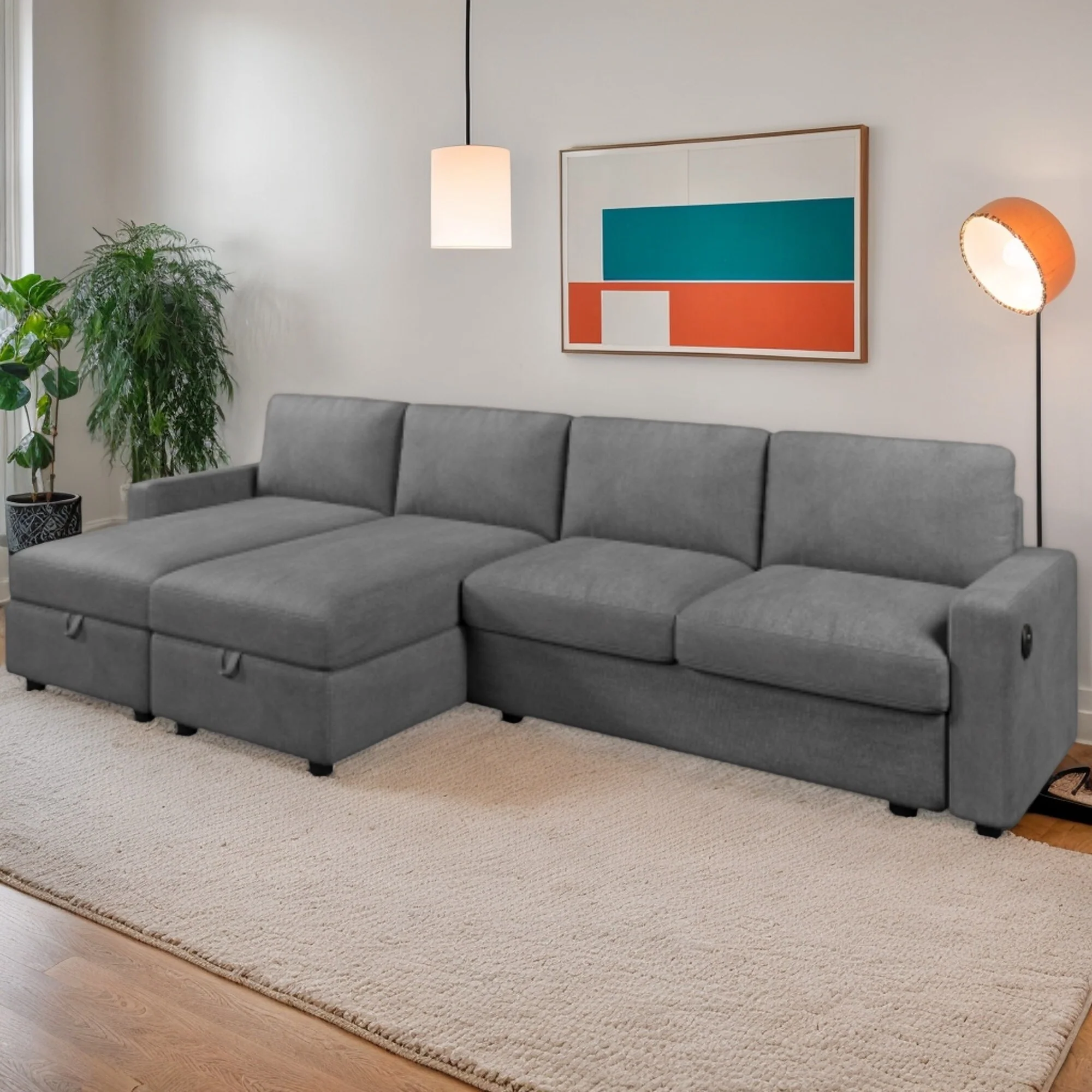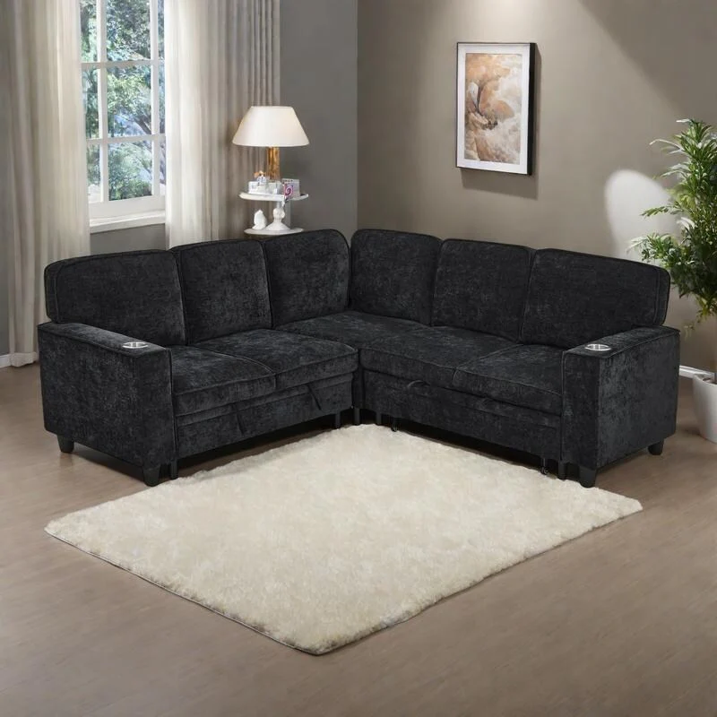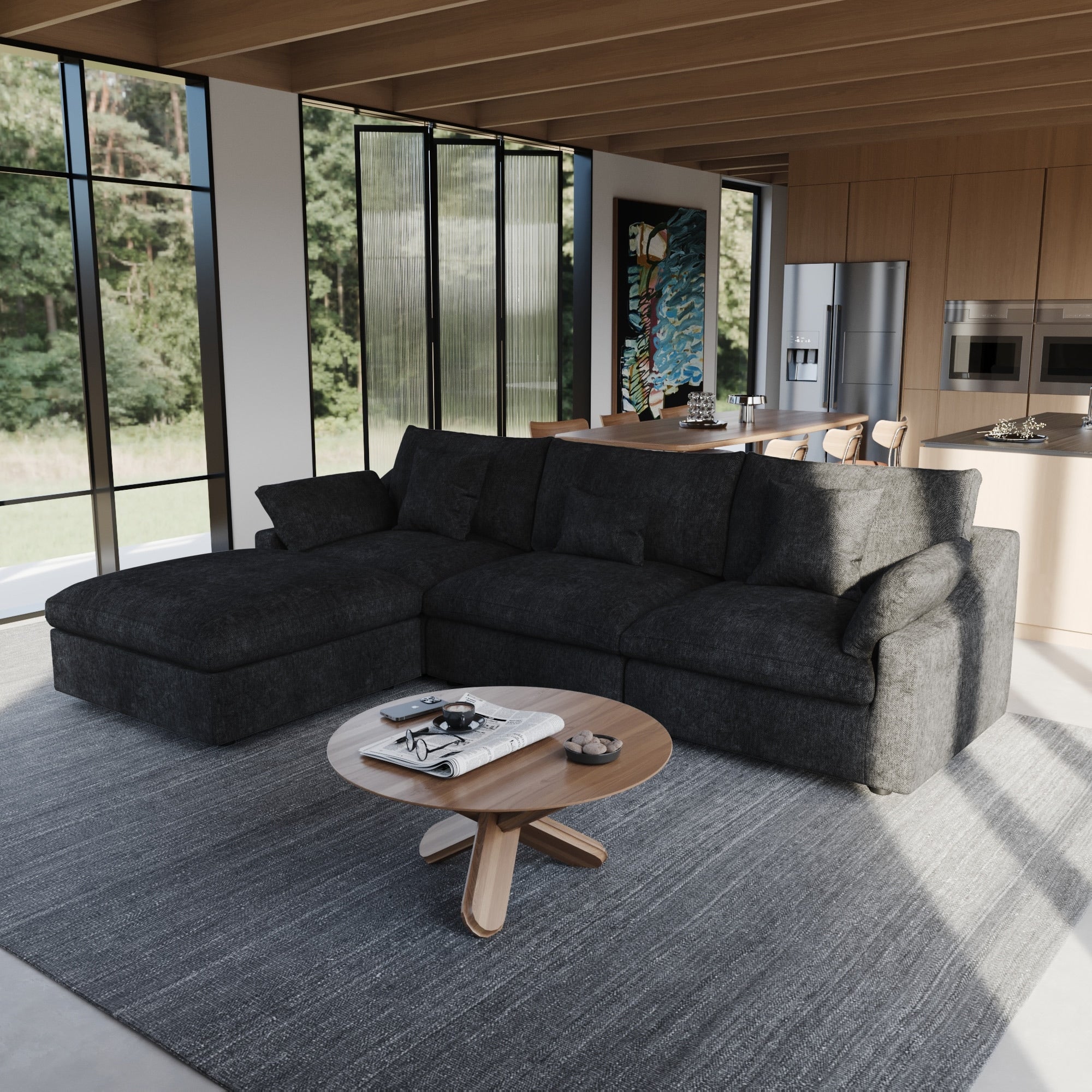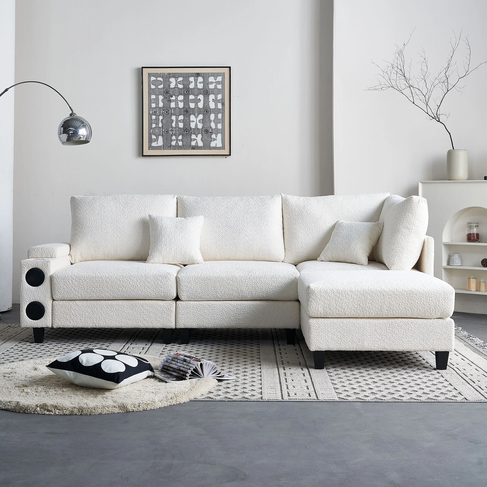 L-shape Linen Upholstered Sofa Multiple Cushions Sectional Couch