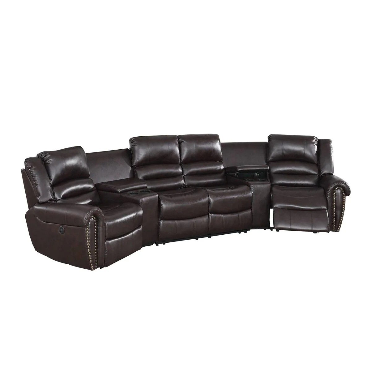 Dina Power Sectional Recliner L Shape Sofa, Dark Brown Faux Leather