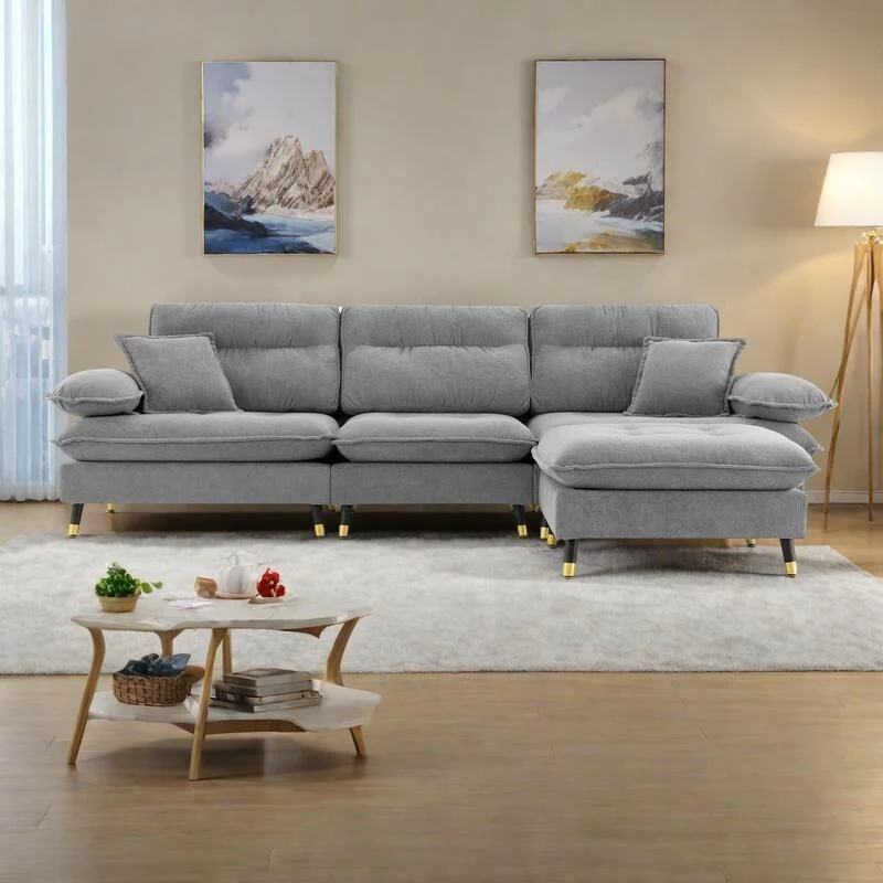 GDFStudio - Shanks Chenille 6-Seater Sofa With 1 Ottoman