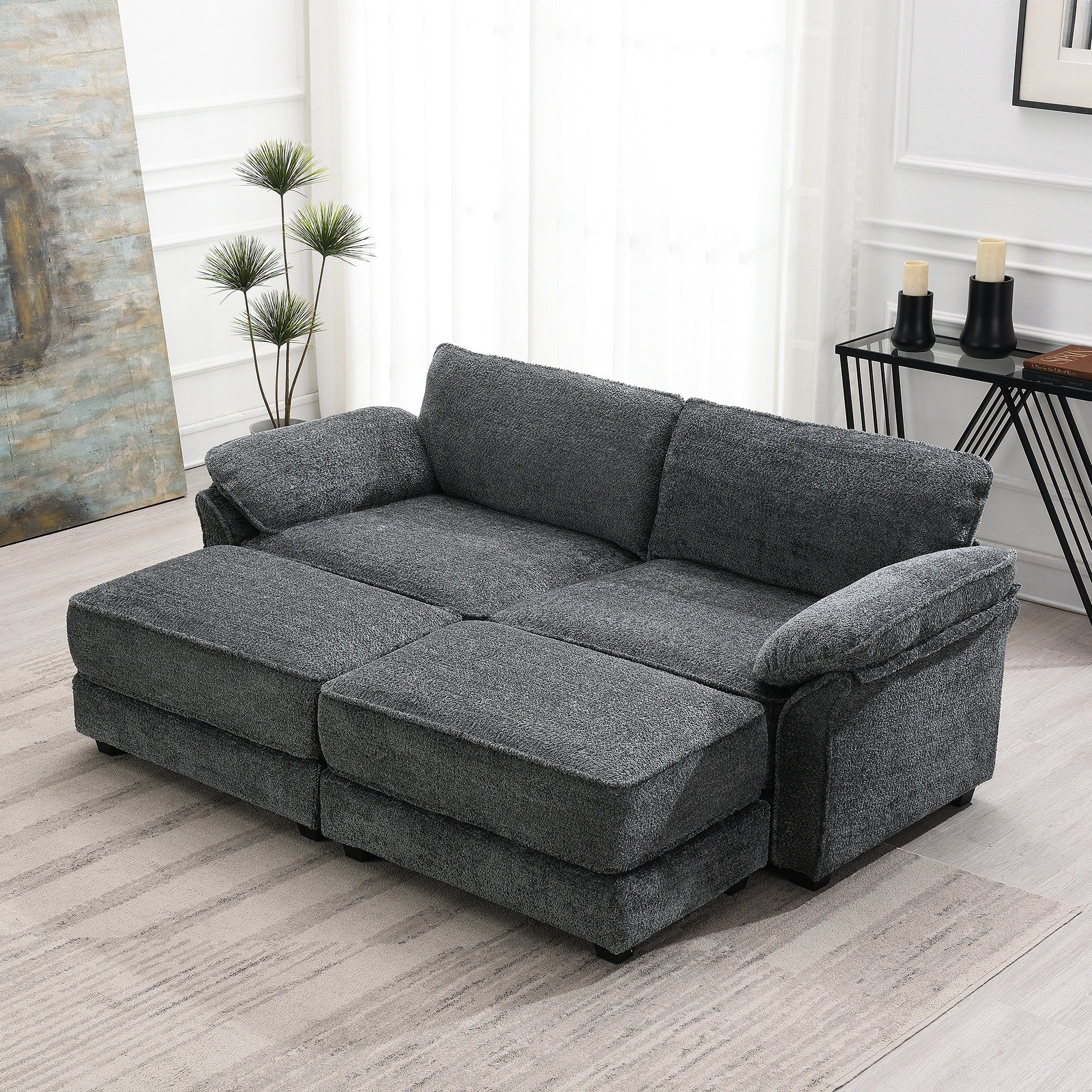 Convertible Sectional Sofa with 2 Storage Ottomans and Console Table