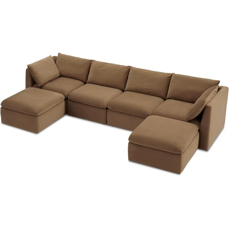 Mopio Macy Modular Sectional Sofa, Modern Cloud Couch Brown