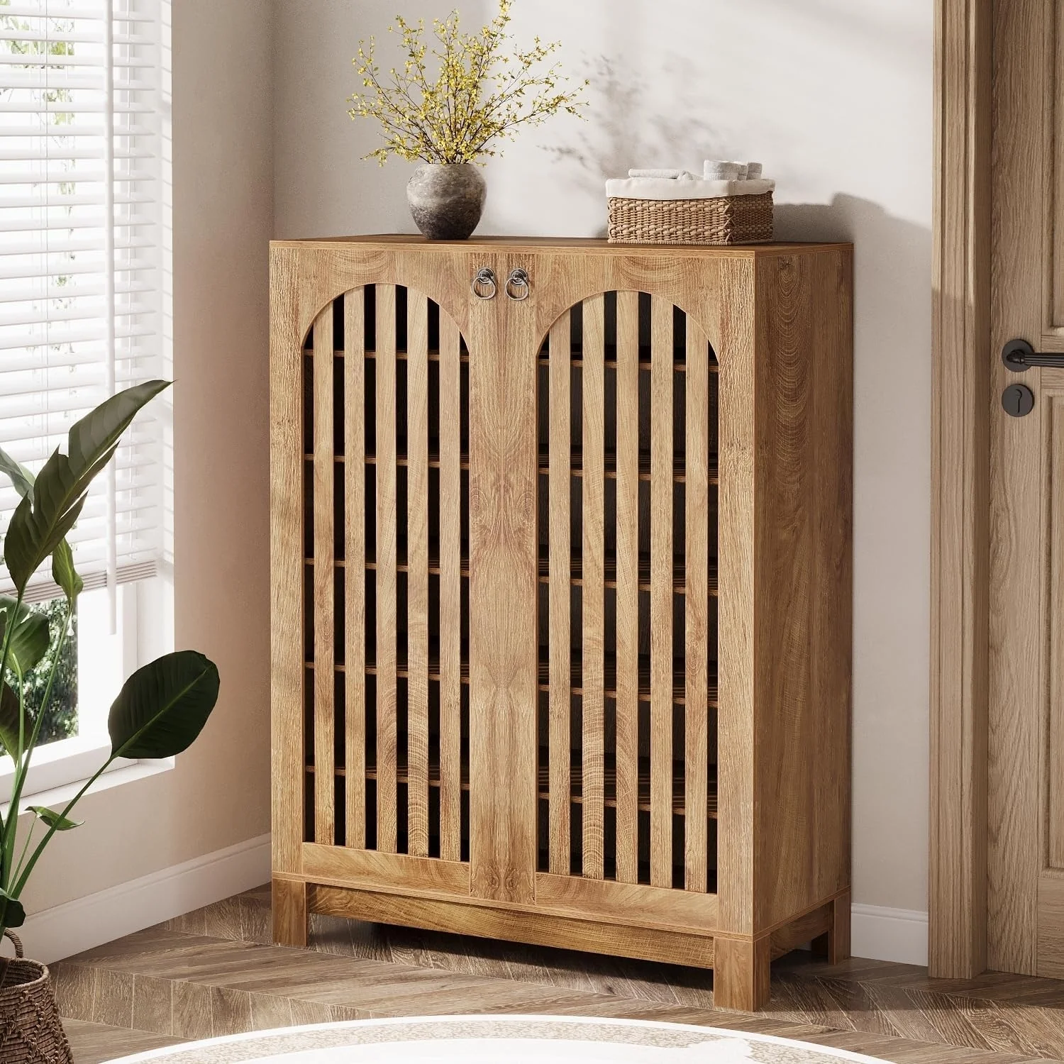 Rattan Shoe Cabinet with 3 Flip Drawers and 4-Tier