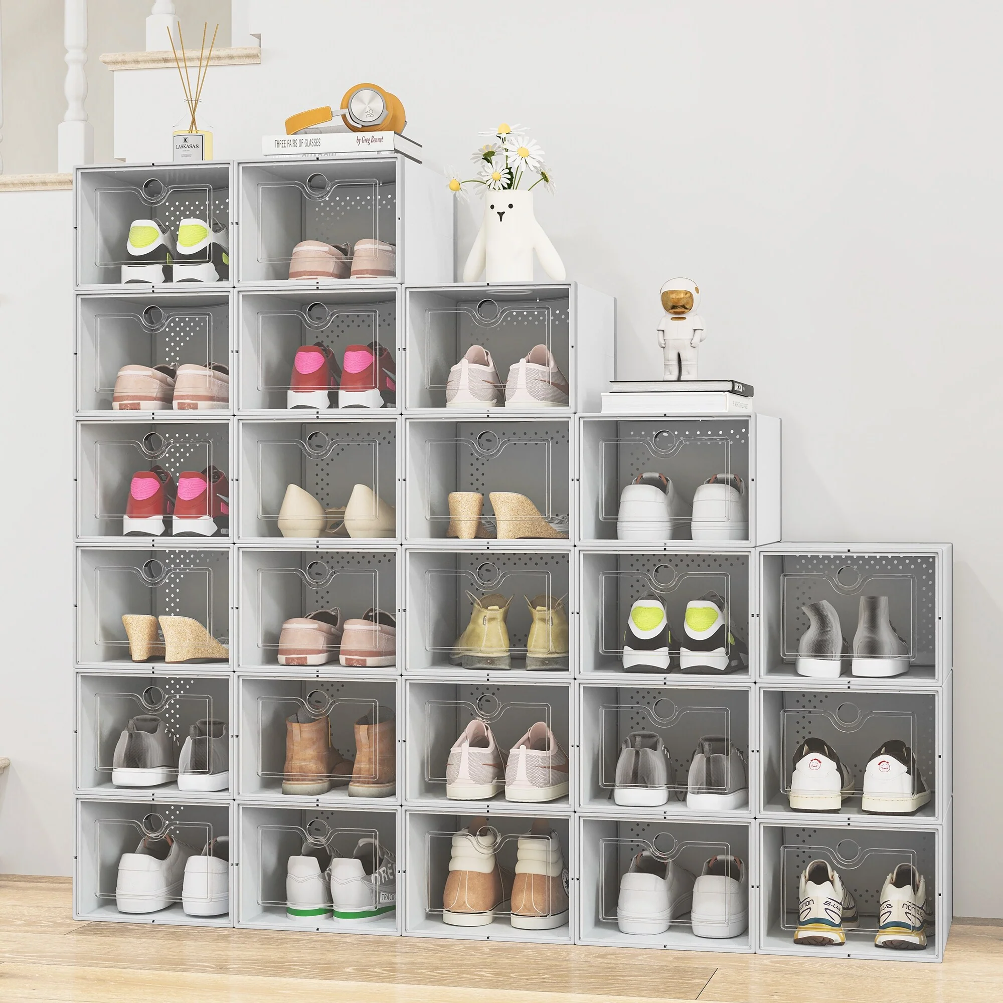 Clear Plastic Stackable Shoe Storage Boxes (Set of 18/12/6 )