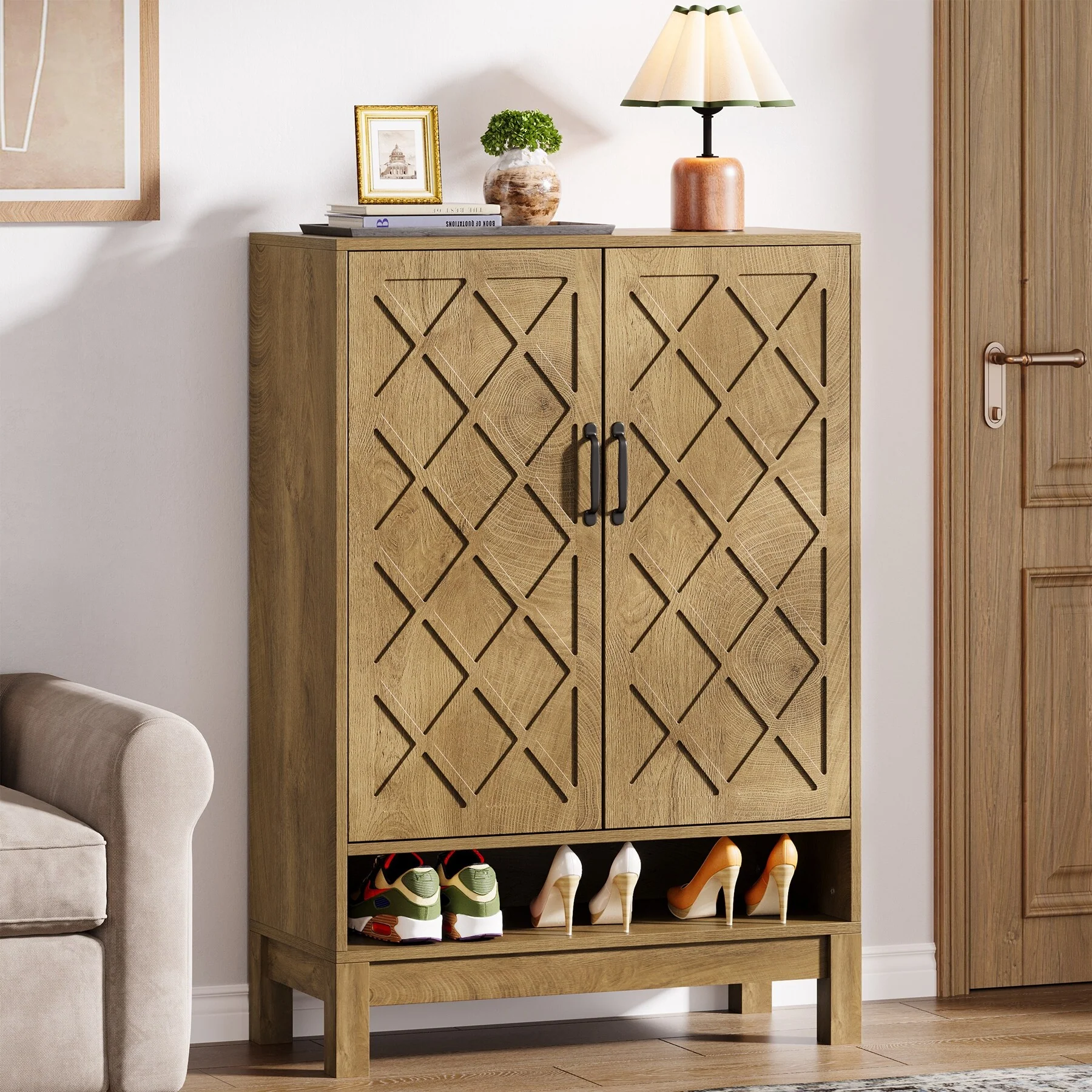 Rustic Brown Shoe Cabinet with 2 Flip Drawers