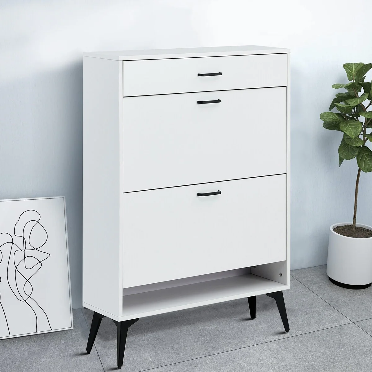 24 Pairs Shoe Storage Cabinet Rack with 2 Flip Drawers - 2-Tier
