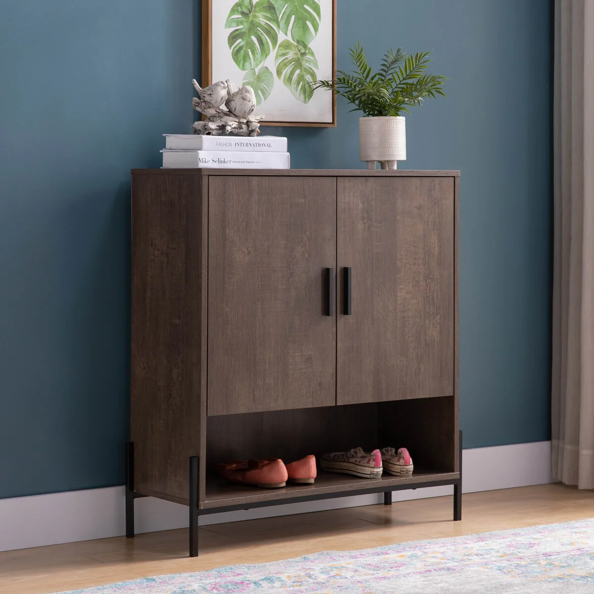 Modern Shoe/Storage Cabinet Two Door with 4 Shelves - Red Cocoa