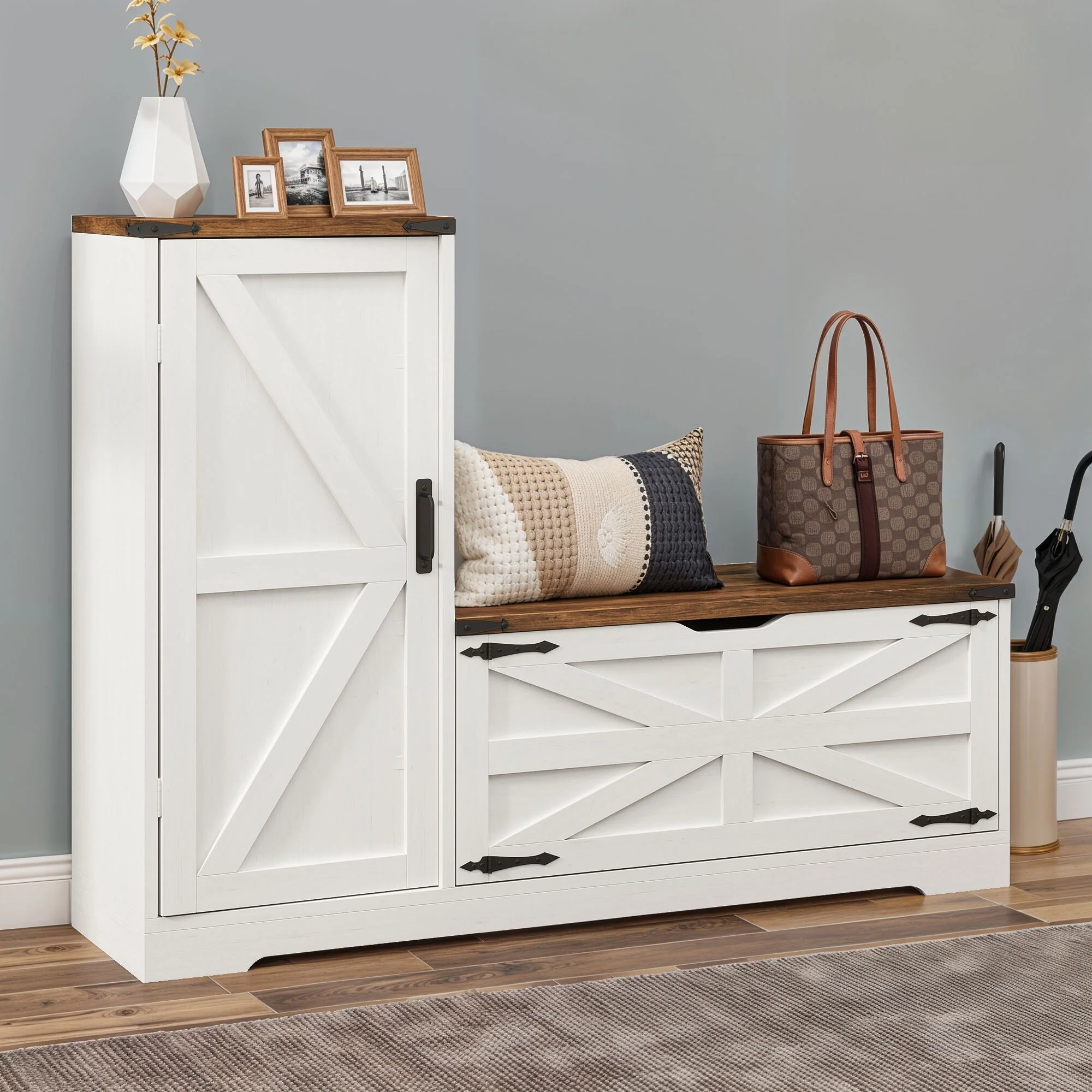 TREXM Shoe Rack with Cushioned Seat and Drawers
