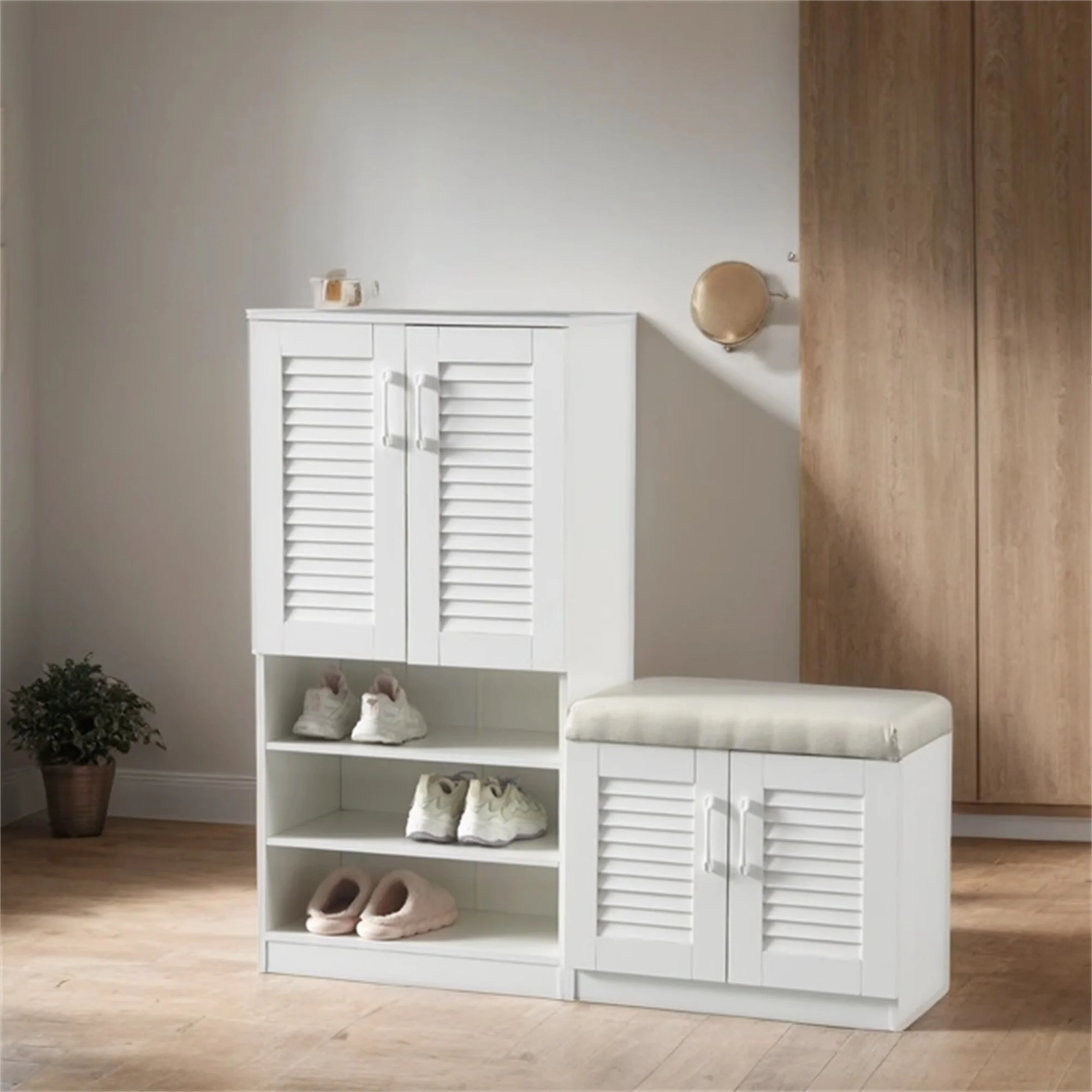 Wood Shoe Storage Cabinet with Bench and Adjustable Layer Board