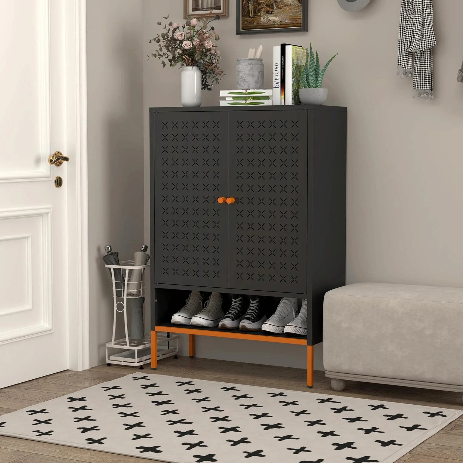 Entryway Shoe Rack with Cushioned Seat